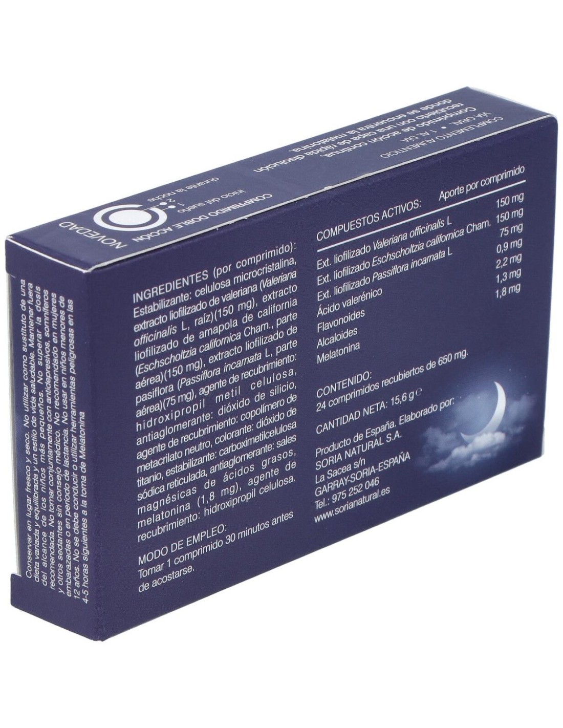 SORIA NATURALComprimido de acción continua (inicio del sueño y durante la noche), recubierto con una capa de rápida disolución donde se encuentra la melatonina. Comprimido de acción continua (inicio del sueño y durante la noche), recubierto con una capa de rápida disolución donde se encuentra la melatonina.