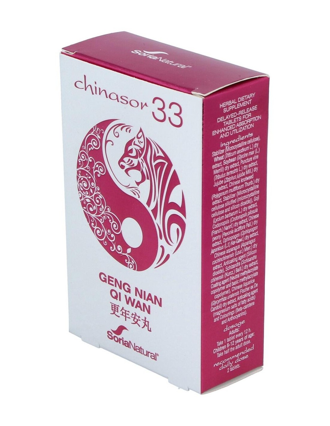 SORIA NATURALEl Chinasor 33 Geng Nian Qi Wan 30Comp. de Soria Natural es un complemento natural dirigido a personas que buscan apoyo en el bienestar general, formulado con ingredientes tradicionales para favorecer el equilibrio corporal.