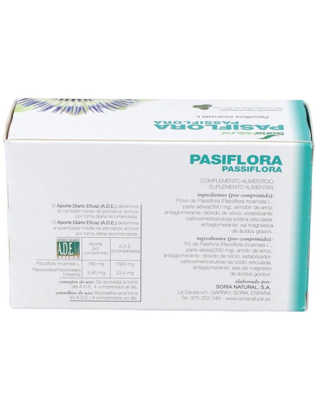 Los comprimidos de Pasiflora de Soria Natural están elaborados con materias primas de origen vegetal, respetando procesos que conservan sus propiedades. Su presentación en envase compacto permite un almacenamiento sencillo y adecuado para el uso cotidiano.