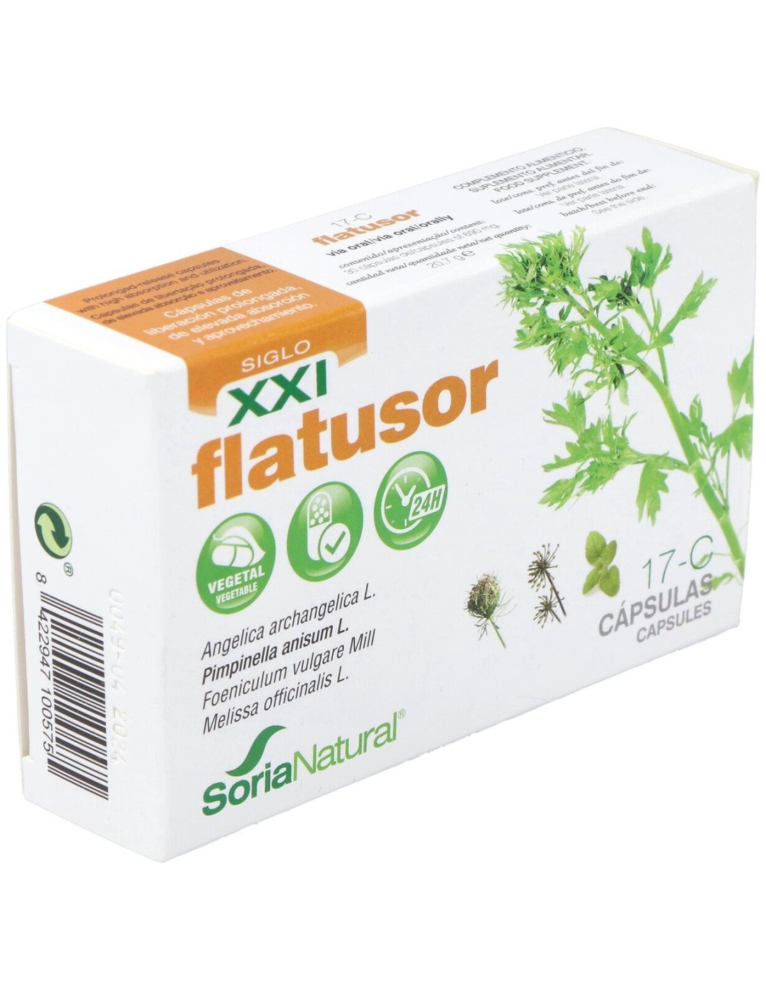 SORIA NATURAL17-C Flatusor XXI es un producto natural indicado para favorecer la digestión y ayudar a la eliminación de los gases. Está elaborado a base de extract