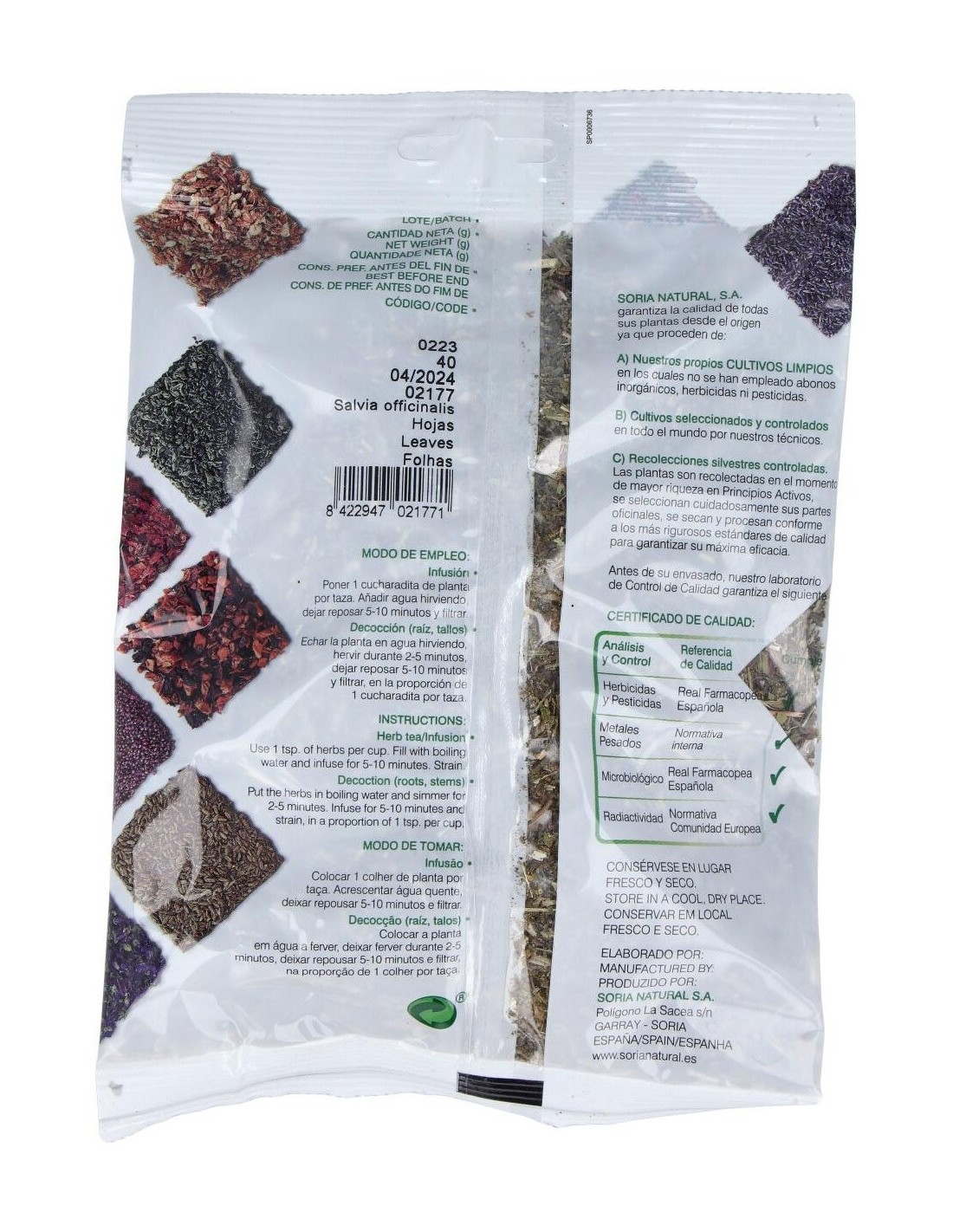 - Presenta una selección de hojas de salvia en presentación de 40 gramos, facilitando su dosificación y almacenamiento.