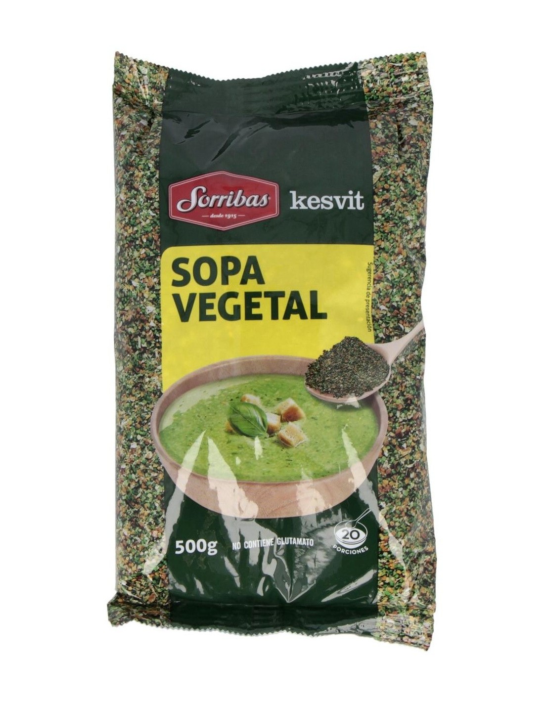 SORRIBASSopa vegetal sin glutamano añadido. Con bajo contenido en grasa y rico en fibra.