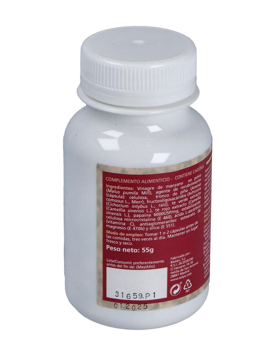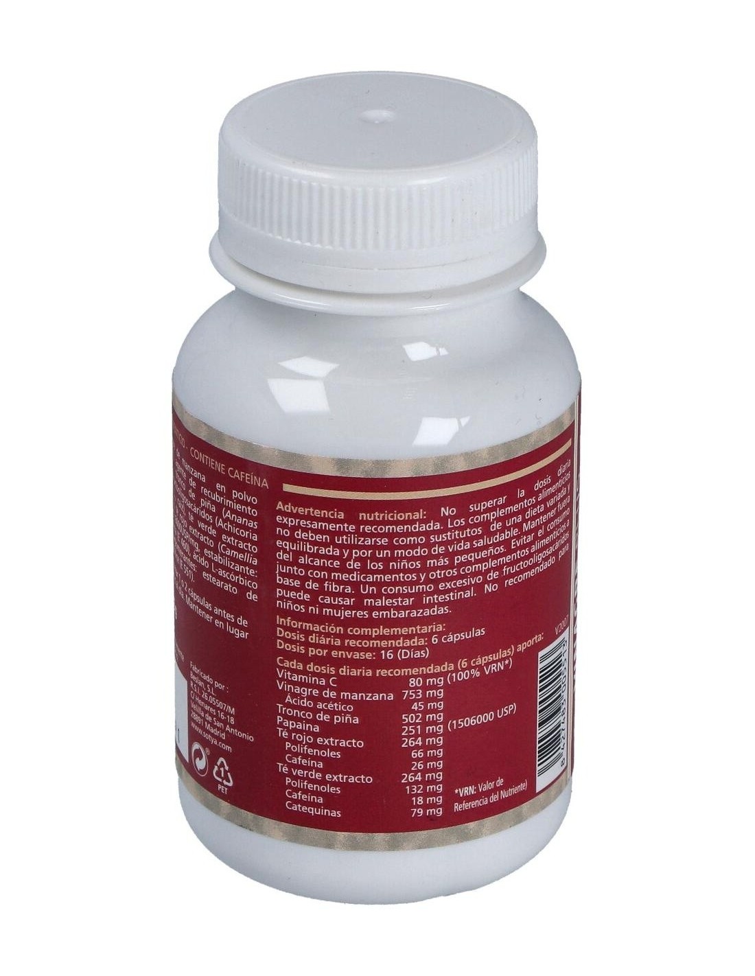 El producto está elaborado con ingredientes seleccionados para mantener la calidad del vinagre en formato cápsula, asegurando una dosificación uniforme en cada unidad. Su diseño permite una administración práctica, sin el sabor característico del vinagre líquido.