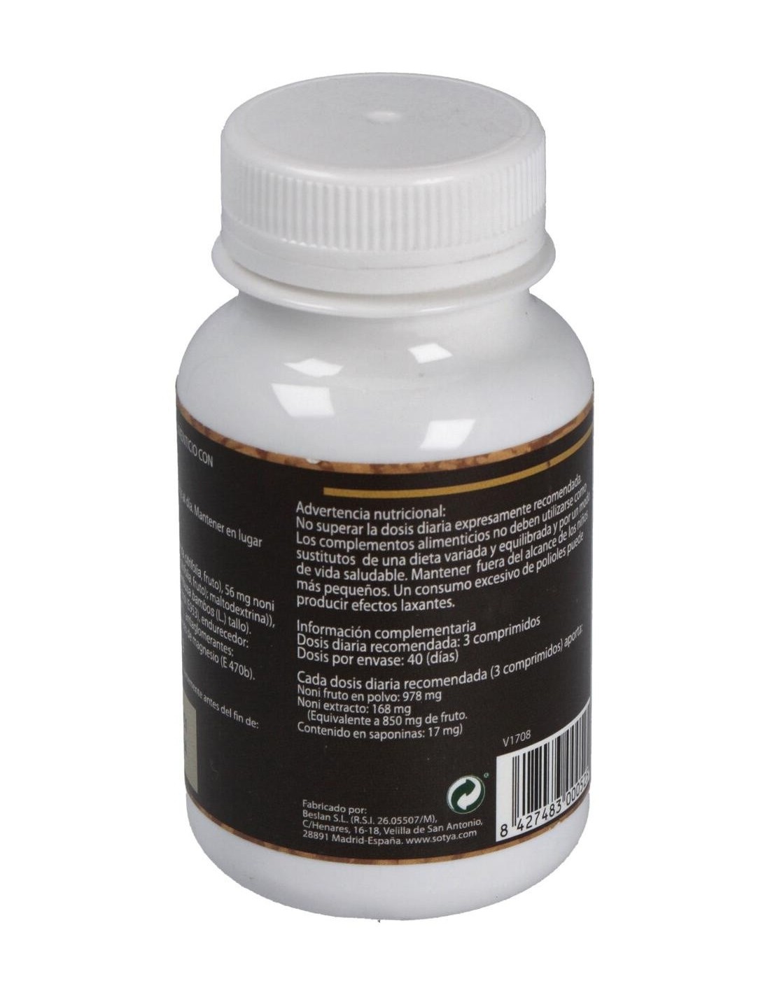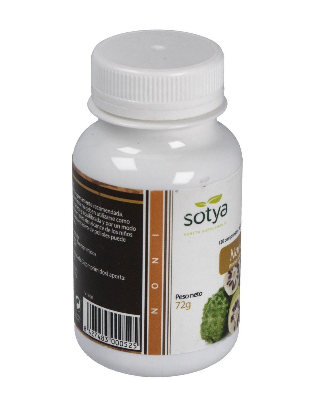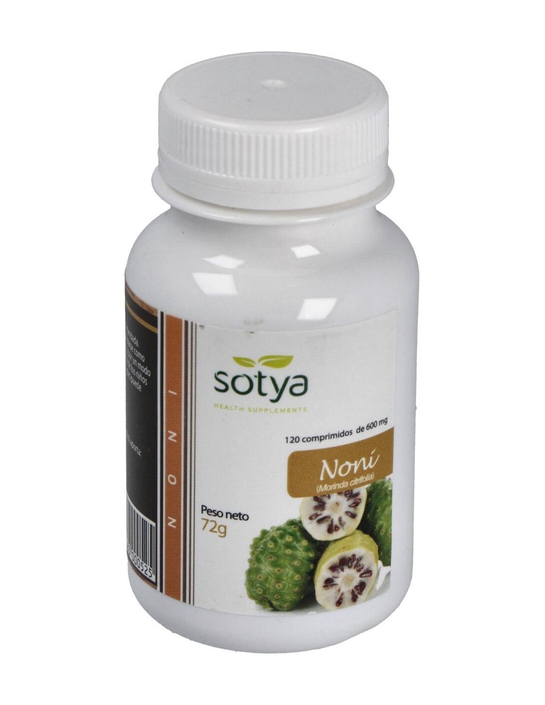 SOTYAEl Noni 600Mg Comp. 120U de Sotya es un suplemento natural para personas que buscan apoyar su bienestar general, formulado con extracto concentrado de noni para facilitar su consumo diario.