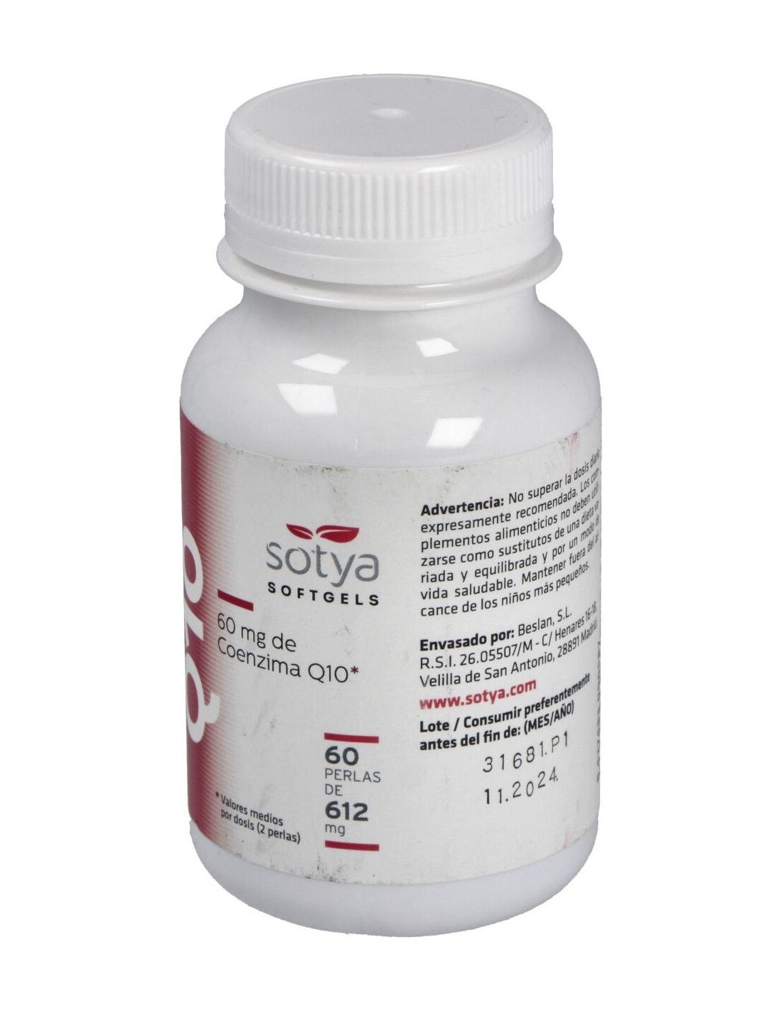 SOTYAEl Coenzima Q10 640Mg Perlas 60U de Sotya es un suplemento para adultos que apoya la producción de energía celular, formulado en perlas para una dosificación práctica y precisa.