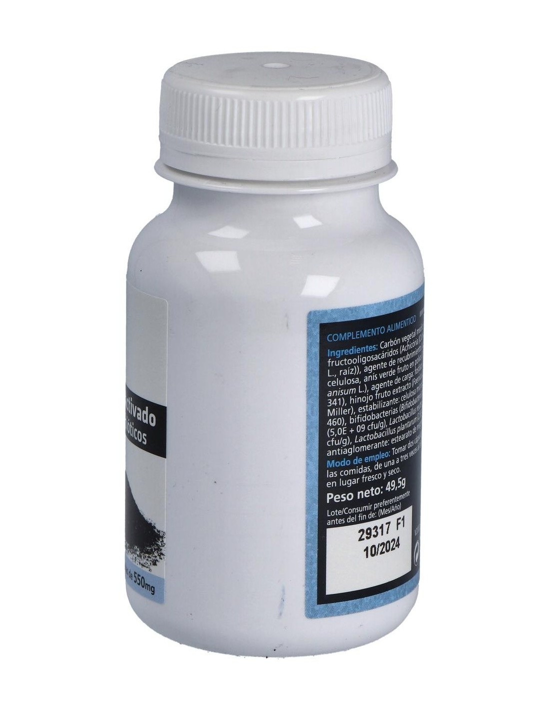 - Cada cápsula contiene 550 mg de carbón activado, reconocido por su capacidad para adsorber sustancias en el organismo.