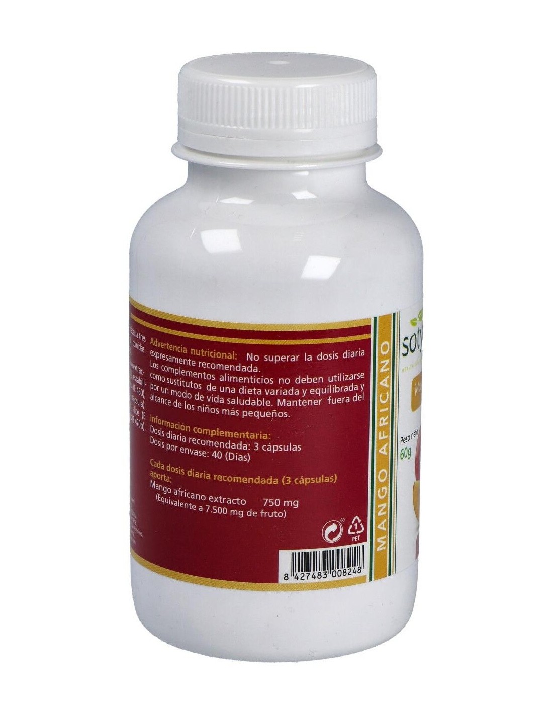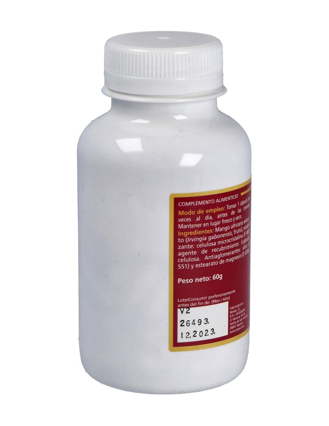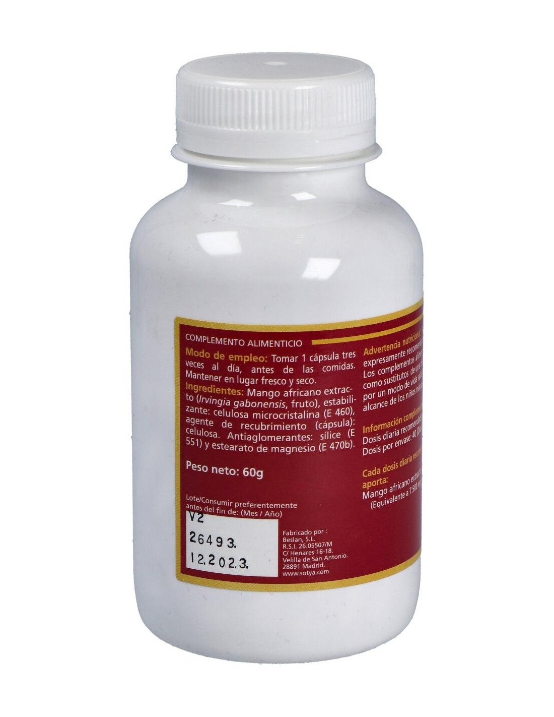 - Cada cápsula contiene 650 mg de extracto de mango africano, facilitando una ingesta controlada y constante.