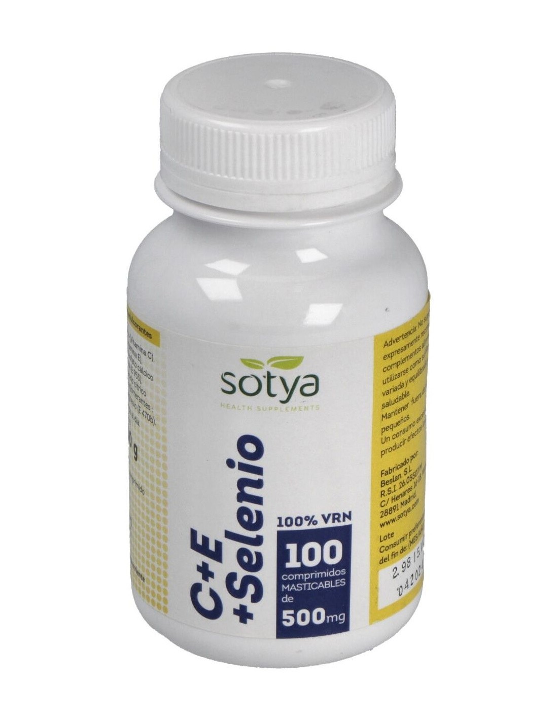 El **C+E+Selenio 500Mg Comp. 100U de Sotya** es un suplemento diseñado para personas que buscan complementar su ingesta diaria de vitaminas C y E junto con selenio, contribuyendo a mantener funciones corporales esenciales. Es adecuado para quienes desean apoyar su bienestar general mediante una fórmula combinada en comprimidos.