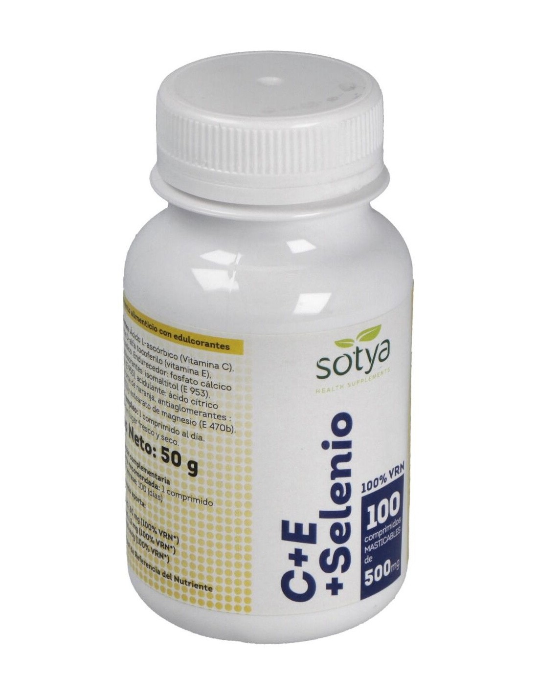 SOTYAEl C+E+Selenio 500Mg Comp. 100U de Sotya es un suplemento nutricional dirigido a personas que buscan apoyar su bienestar diario, combinando vitaminas C, E y selenio para contribuir a la protección celular.