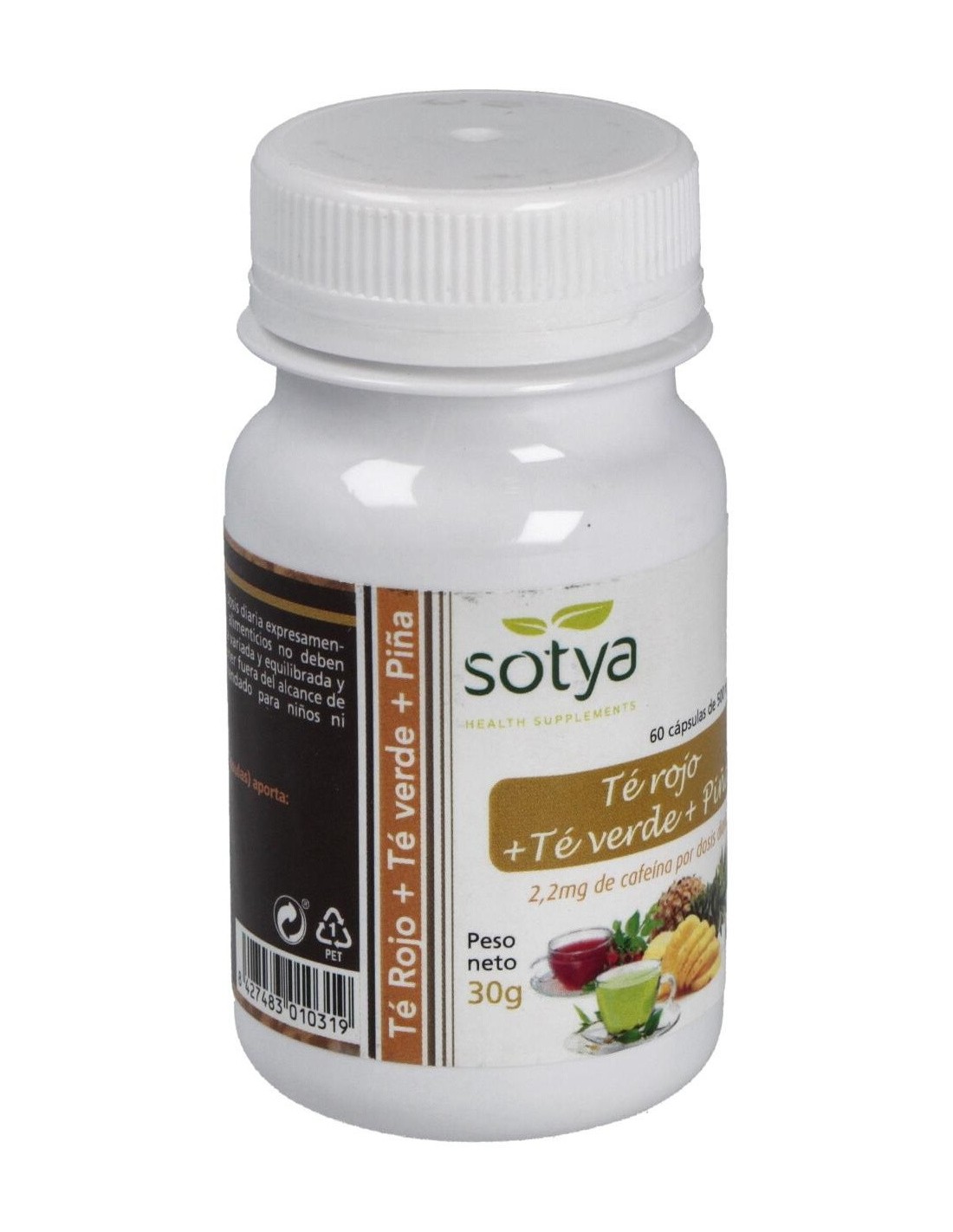**Té Rojo+Té Verde+Piña 500Mg Cáps. 60U de Sotya** es un suplemento diseñado para personas interesadas en complementar su dieta con ingredientes naturales que aportan propiedades asociadas al bienestar general. Su formulación combina extractos de té rojo, té verde y piña en cápsulas fáciles de consumir.