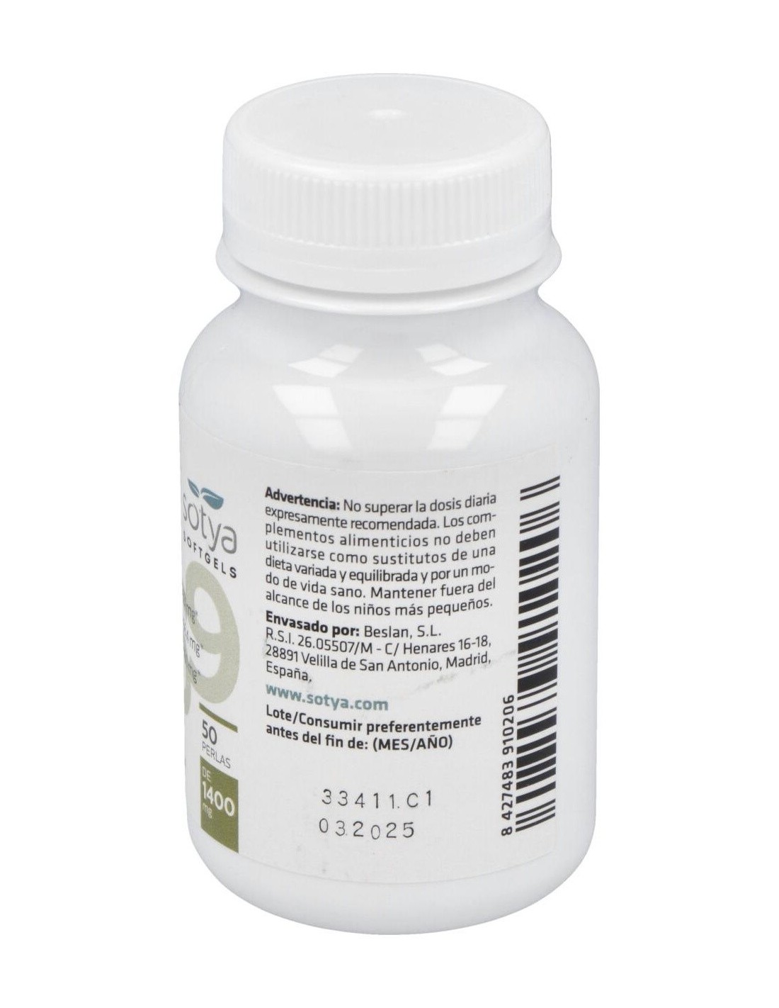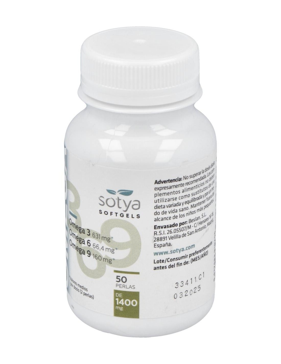 Omega 3,6,9 1400Mg Perlas 50U de Sotya es un suplemento diseñado para personas que buscan complementar su dieta con ácidos grasos esenciales. Este producto es adecuado para quienes desean mantener un aporte equilibrado de omega 3, 6 y 9 en su rutina diaria.