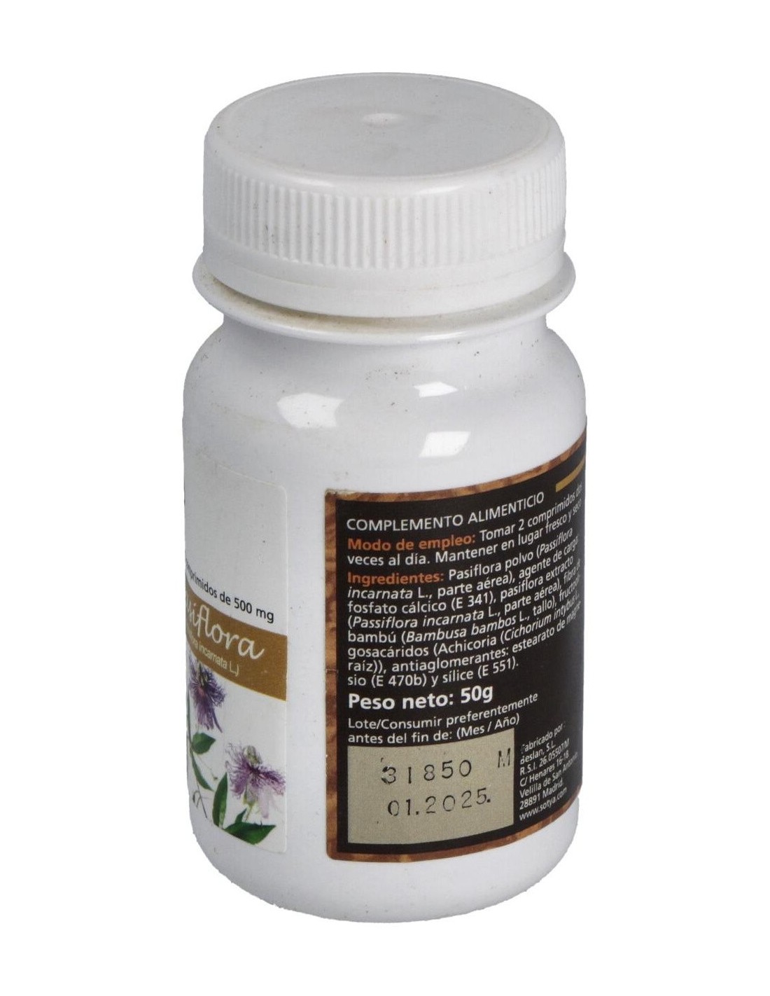 - Cada comprimido contiene 500 mg de extracto de pasiflora, contribuyendo a una ingesta controlada y constante.