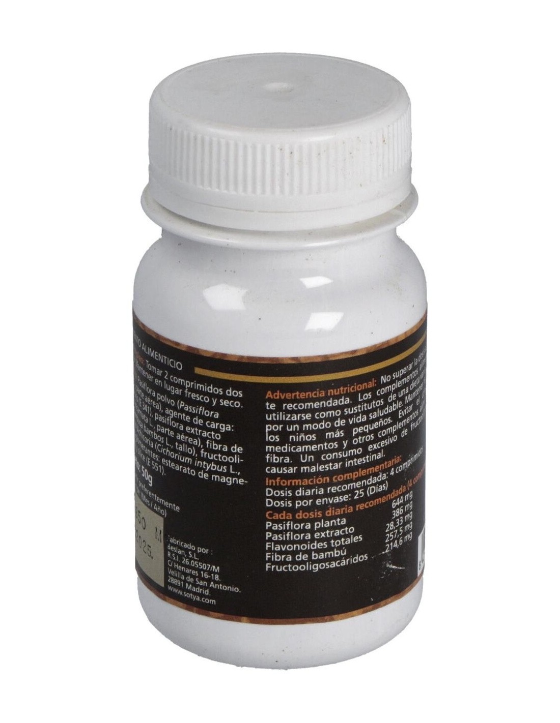 Este suplemento está compuesto principalmente por extracto de pasiflora, reconocido por su uso tradicional. Su diseño en comprimidos compactos facilita la incorporación en la rutina diaria, adaptándose a diferentes estilos de vida.