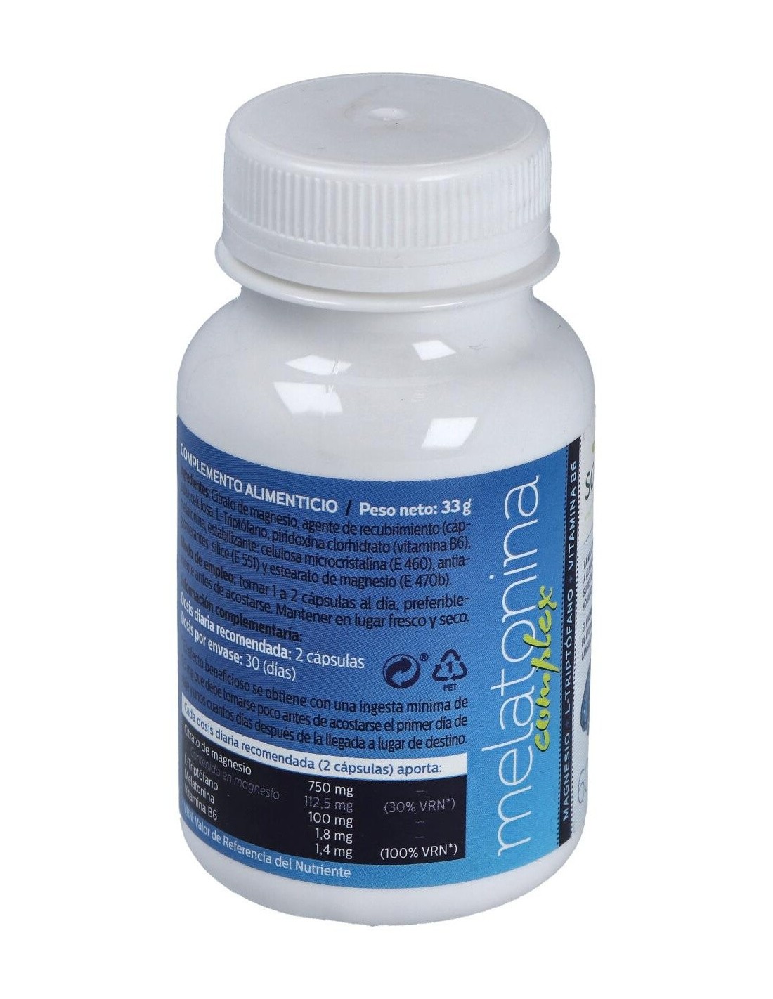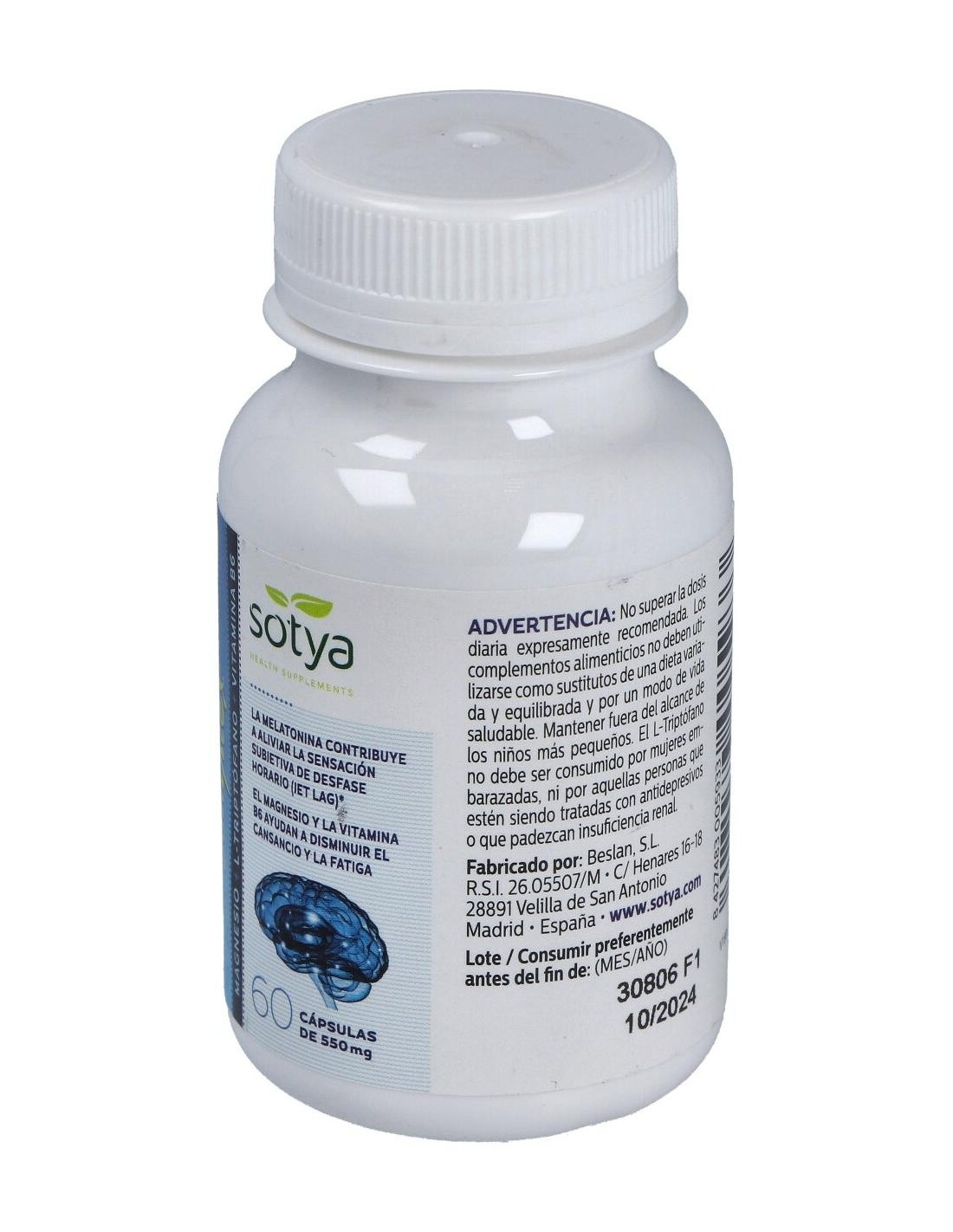 Melatonina Complex Magnesio+L-Triptofano+Vitamina B6 550Mg Cáps. 60U de Sotya