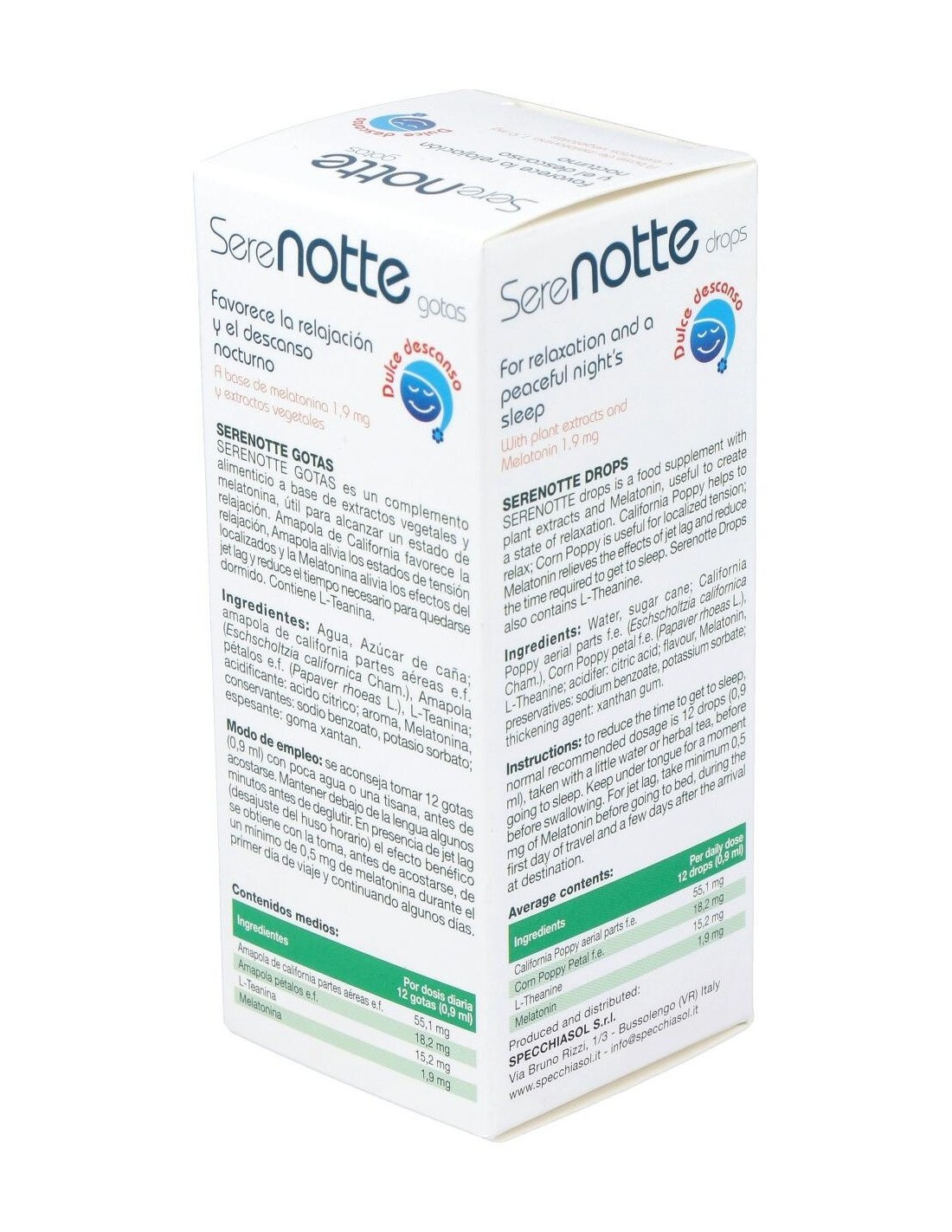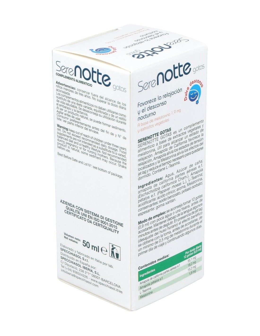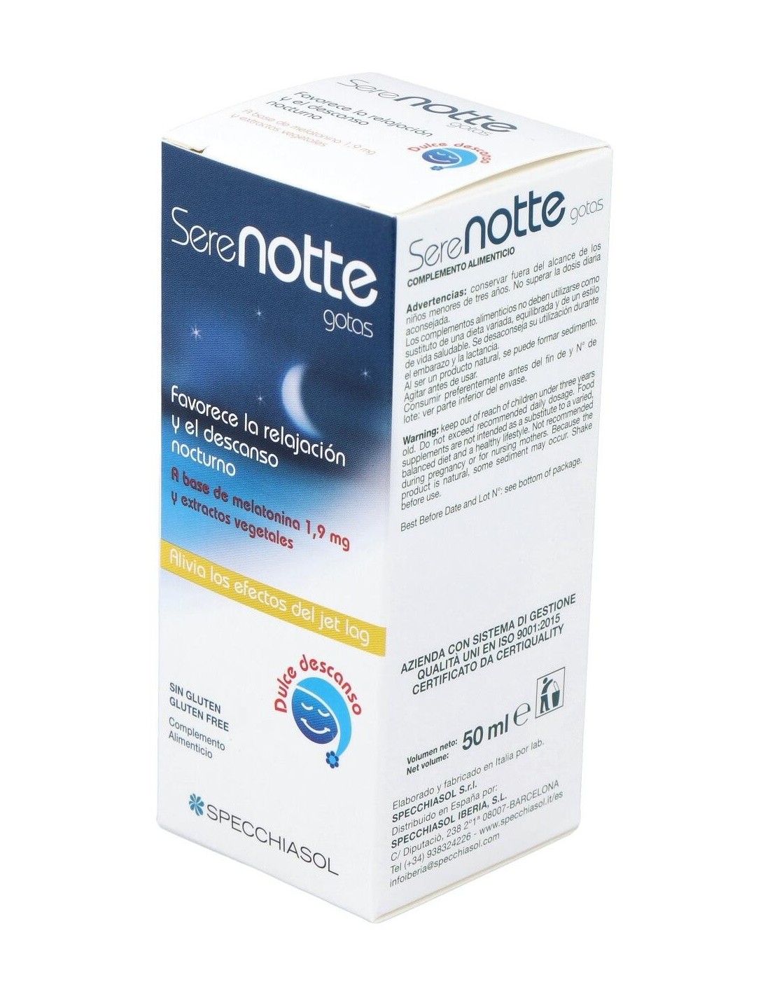 SPECCHIASOLLa Melatonina 1,9Mg. (Serenotte) 50Ml. de Specchiasol es un suplemento dirigido a personas que buscan apoyar su ciclo de sueño, ofreciendo una dosificación precisa de melatonina en formato líquido para facilitar su administración.