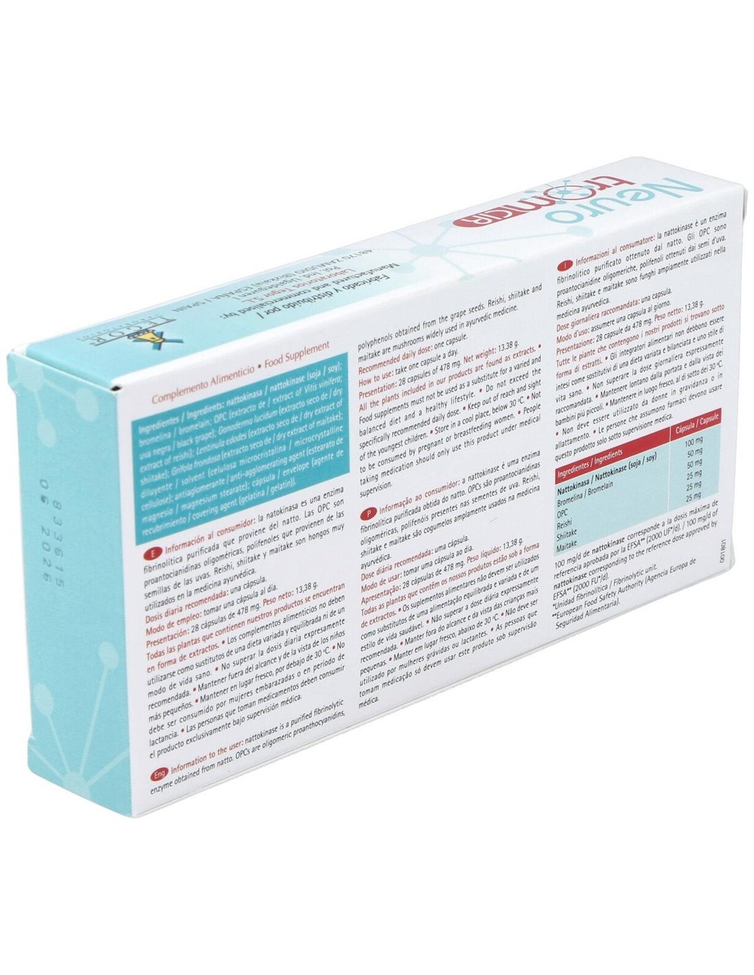 - Contiene ingredientes que participan en procesos relacionados con el sistema nervioso y el metabolismo.