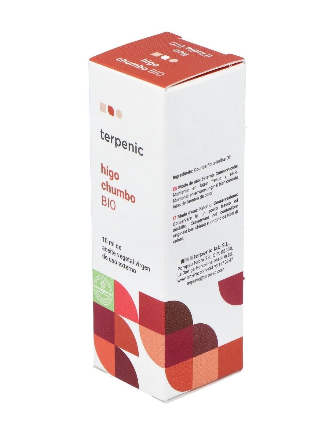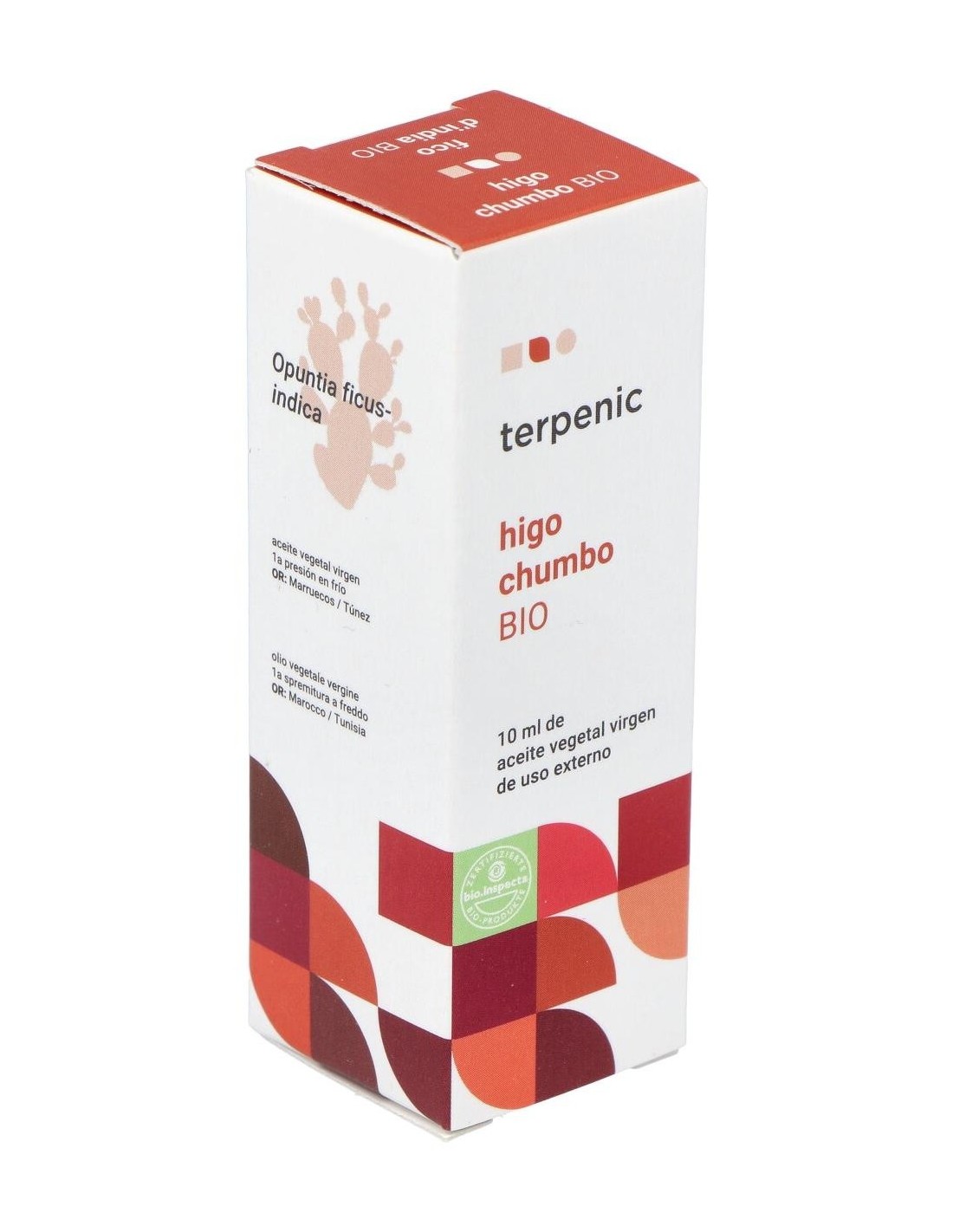Higo Chumbo Aceite Vegetal Virgen Bio 10Ml. de Terpenic es un aceite vegetal obtenido mediante prensado en frío de higos chumbos cultivados de forma ecológica. Está dirigido a personas interesadas en productos naturales para el cuidado personal y la nutrición consciente, que buscan ingredientes de origen orgánico y con procesos respetuosos con el medio ambiente.