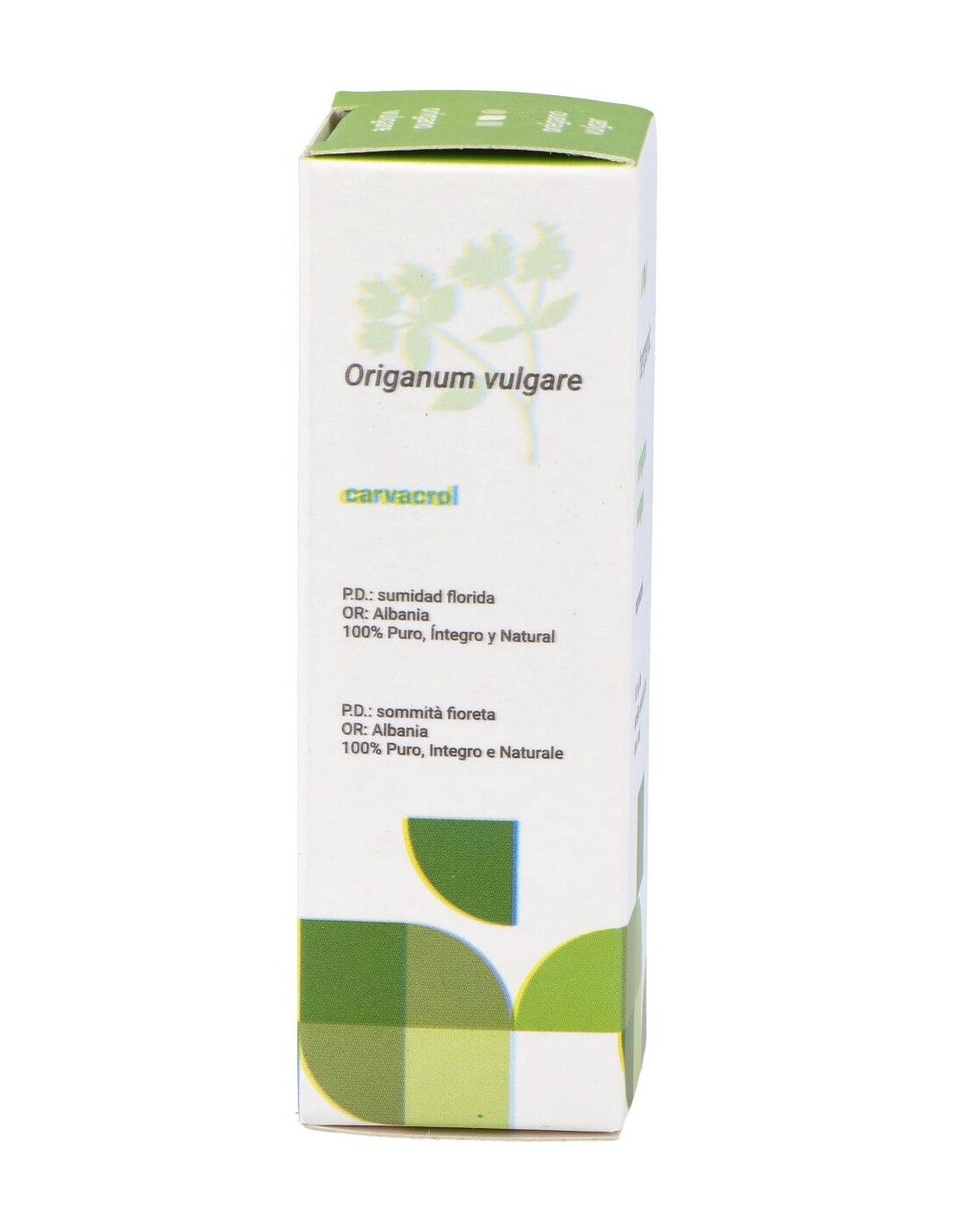 Este aceite esencial está compuesto por extractos naturales de orégano, cuidadosamente procesados para mantener su pureza y propiedades organolépticas. Su envase compacto permite un almacenamiento seguro y práctico, conservando la calidad del producto durante su uso.