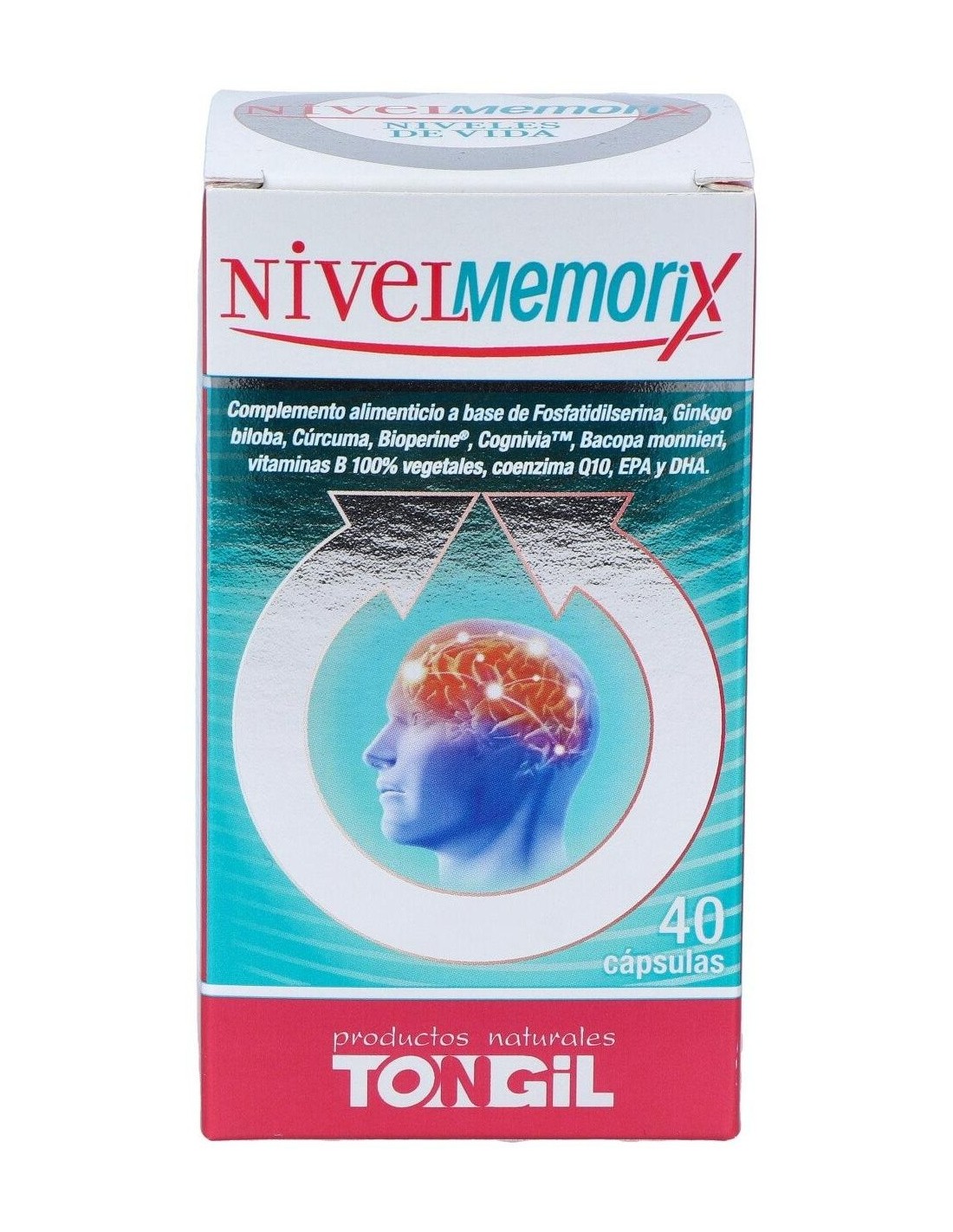TONGILNivelMemorix de Tongil es un complemento alimenticio a base de Fosfatidilserina, Ginkgo biloba, Cúrcuma, Bioperine® , Cognivia?, Bacopa monnieri, vita