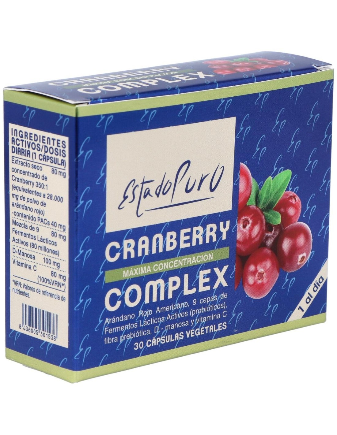 Cranberry Complex 30Cap. Estado Puro de Tongil ofrece una opción para complementar la alimentación diaria con extractos de arándano rojo, aportando una alternativa natural dentro de una dieta equilibrada.