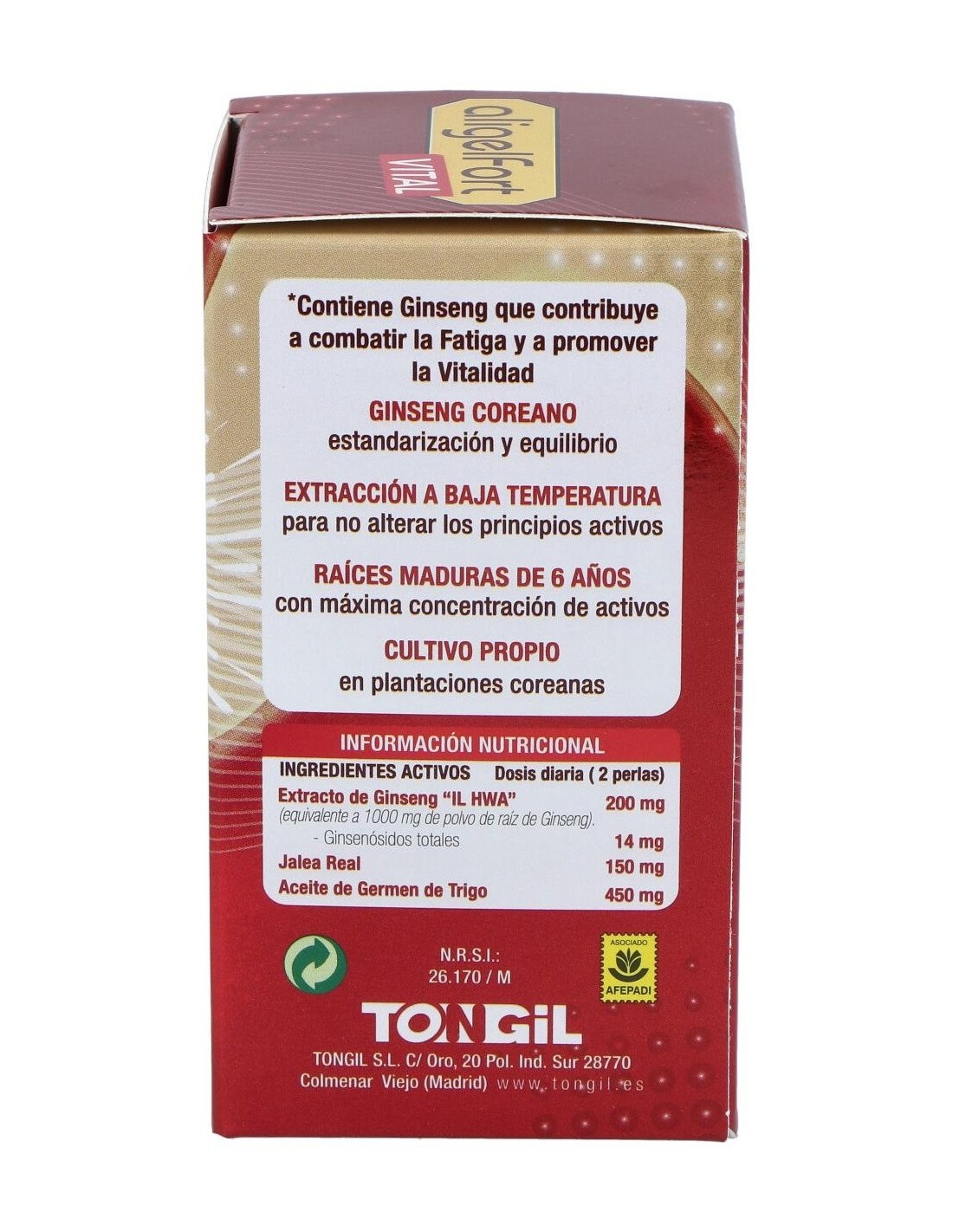 TONGILComplemento alimenticio a base de Ginseng Coreano IL HWA, Jalea Real y aceite de germen de trigo.