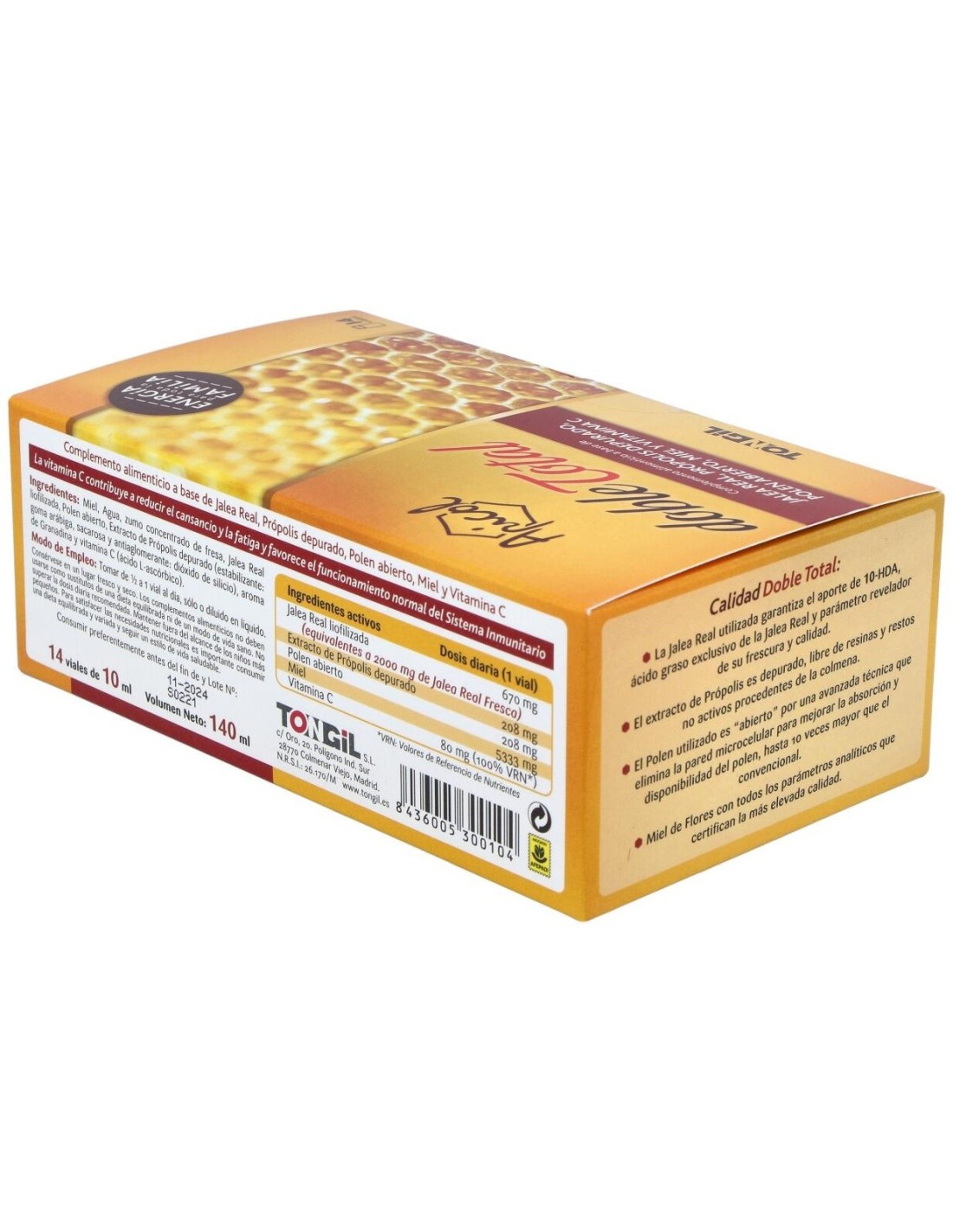 El Apicol Doble Total 14Amp de Tongil es un suplemento diseñado para personas que buscan apoyar su bienestar diario mediante una fórmula equilibrada. Su composición está pensada para integrarse fácilmente en rutinas de cuidado personal, aportando nutrientes específicos que contribuyen a mantener un estado saludable.