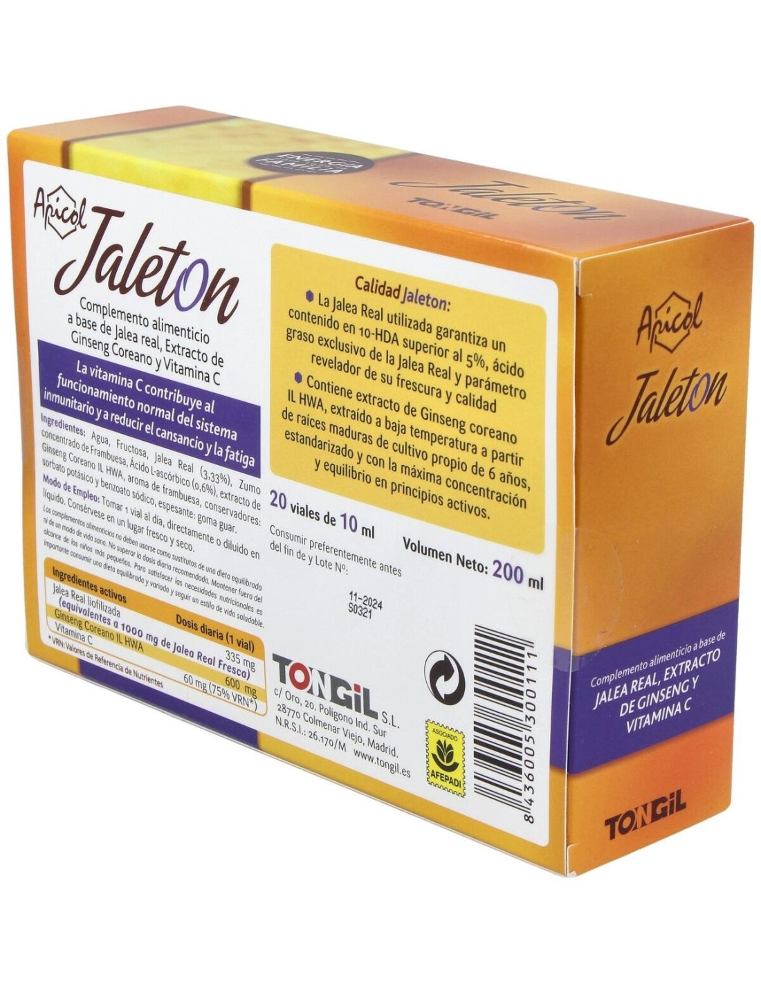 TONGILComplemento alimenticio a base de Jalea Real, extracto de Ginseng coreano y Vitamina C.