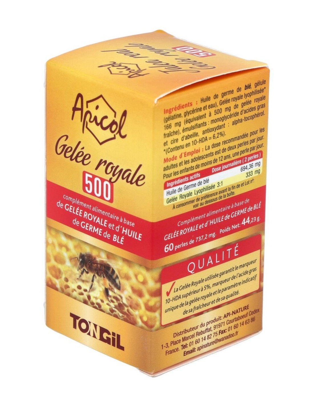 Apicol Jalea Real 500Gr. 60Perlas de Tongil ofrece una forma accesible de incorporar jalea real en la dieta diaria, adaptándose a diferentes estilos de vida.