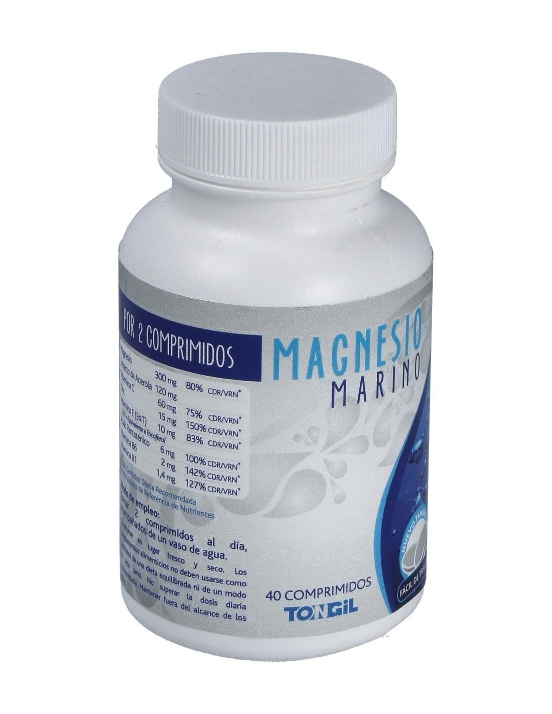 Magnesio Marino 40Comp. de Tongil es un suplemento diseñado para personas que buscan complementar su ingesta diaria de magnesio a partir de fuentes naturales. Es adecuado para quienes desean mantener un aporte equilibrado de este mineral esencial dentro de una dieta variada.