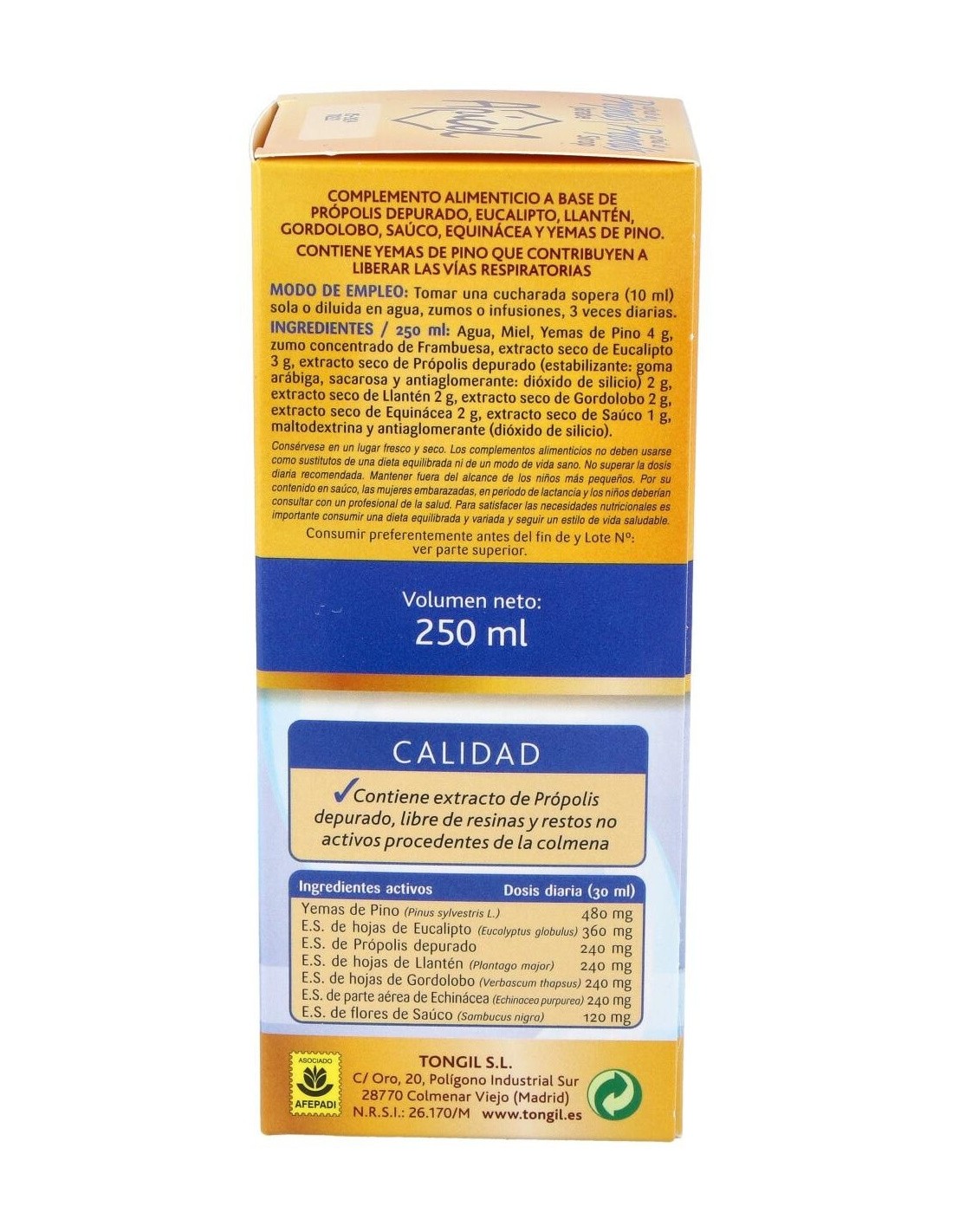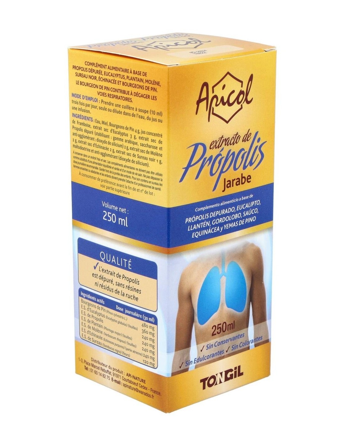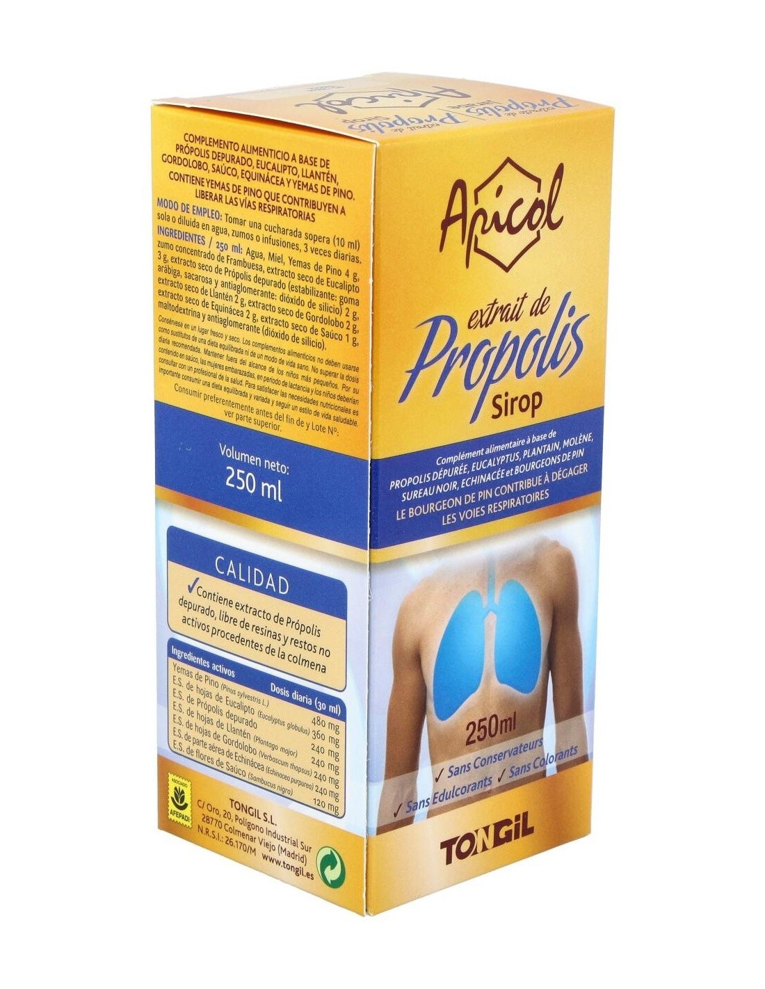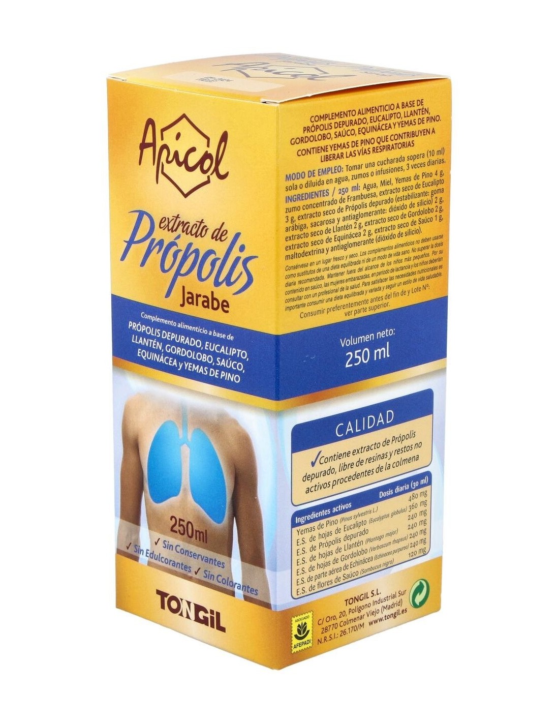 TONGILEl Apicol Extracto Propolis Jarabe 250Ml. de Tongil es un suplemento natural para personas que buscan apoyar su bienestar diario, formulado con extracto de propóleos para contribuir a la salud general.