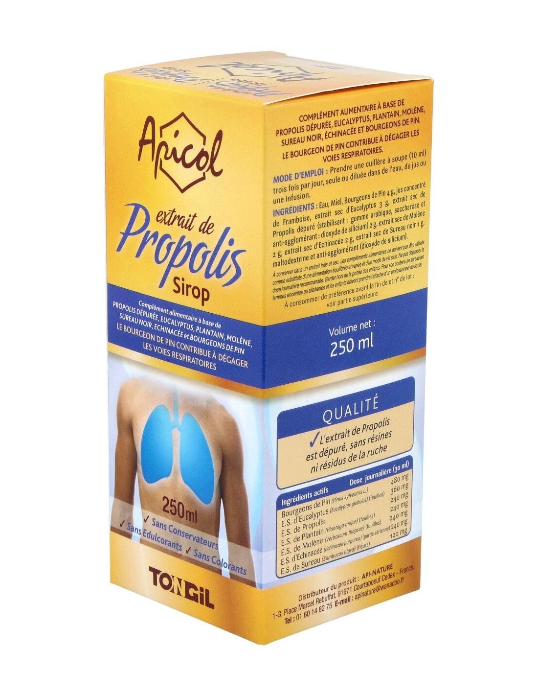 Apicol Extracto Propolis Jarabe 250Ml. de Tongil es un complemento formulado para personas que buscan apoyar su bienestar diario mediante ingredientes derivados de la propóleos. Su presentación en jarabe facilita la dosificación y el consumo, adaptándose a diferentes necesidades.