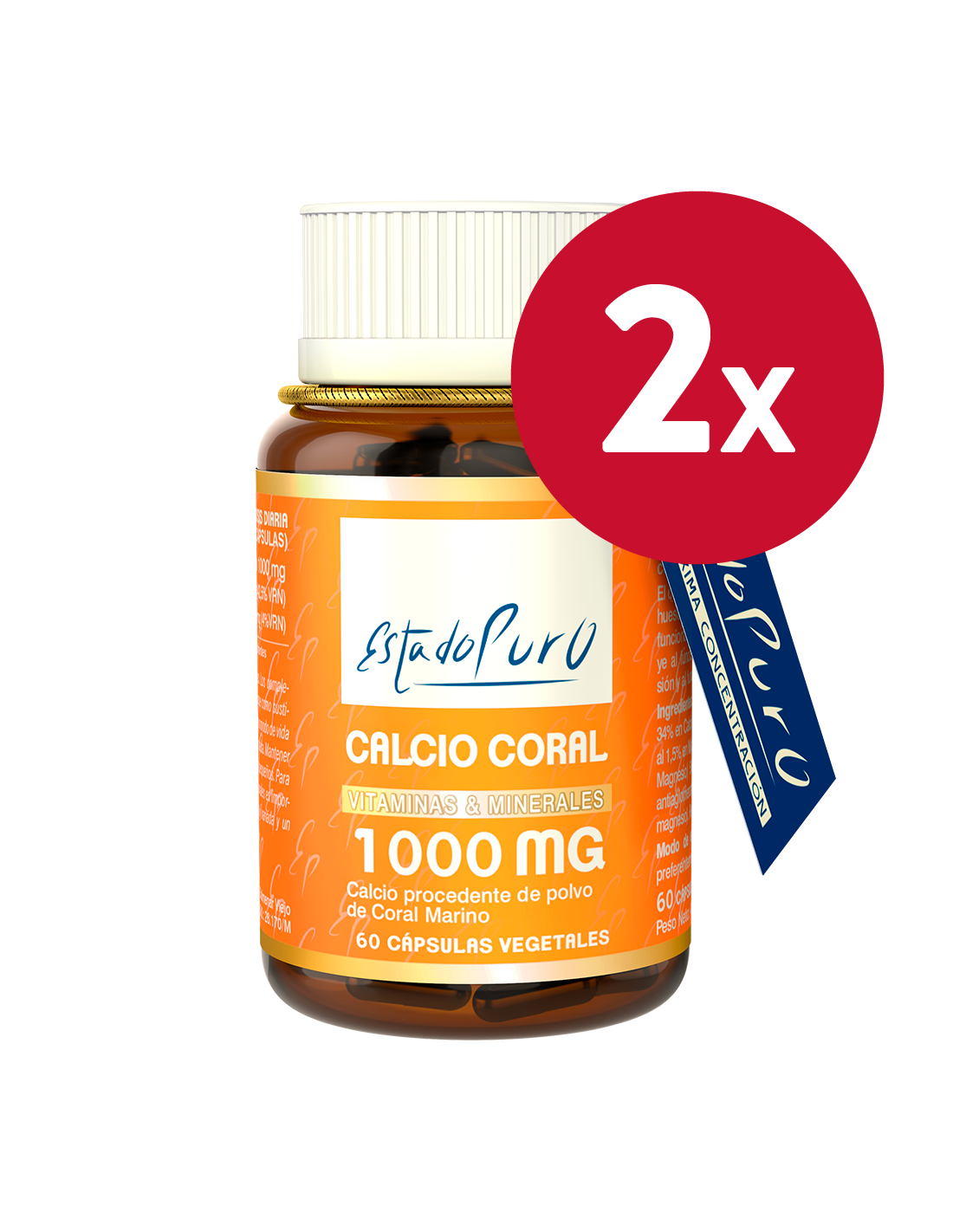 El Pack 2 Unidades Calcio Coral 1000Mg. 60Cap. Estado Puro de T está diseñado para personas que buscan complementar su ingesta diaria de calcio con una fuente natural y de fácil absorción. Este producto es adecuado para quienes desean mantener un aporte constante de este mineral esencial en su dieta.
