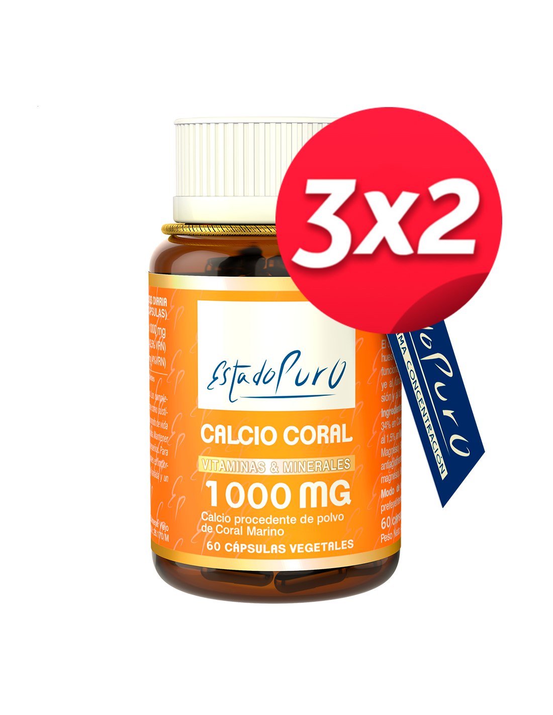 El Pack 3X2 Calcio Coral 1000Mg. 60Cap. Estado Puro de Tongil está diseñado para personas que buscan complementar su ingesta diaria de calcio con un producto elaborado a partir de coral marino. Este suplemento es adecuado para quienes desean mantener niveles adecuados de calcio en su dieta de forma práctica y natural.