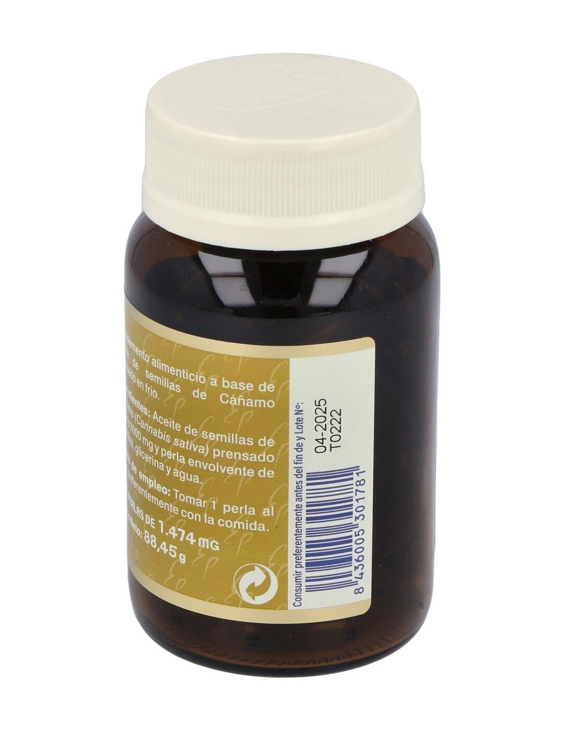 Aporta por perla 1000 mg de aceite de semillas de Cáñamo (Cannabis sativa) prensado en frío, que aporta ácido linoleico.