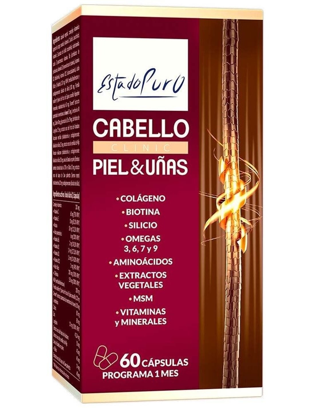 La fórmula se acompaña de Biotina que proporciona resistencia al cabello, MSM, los aminoácidos Cistina y L-metionina, y vitaminas y minerales como las vitaminas C, E y Zinc que favorecen la protección frente al daño oxidativo.
