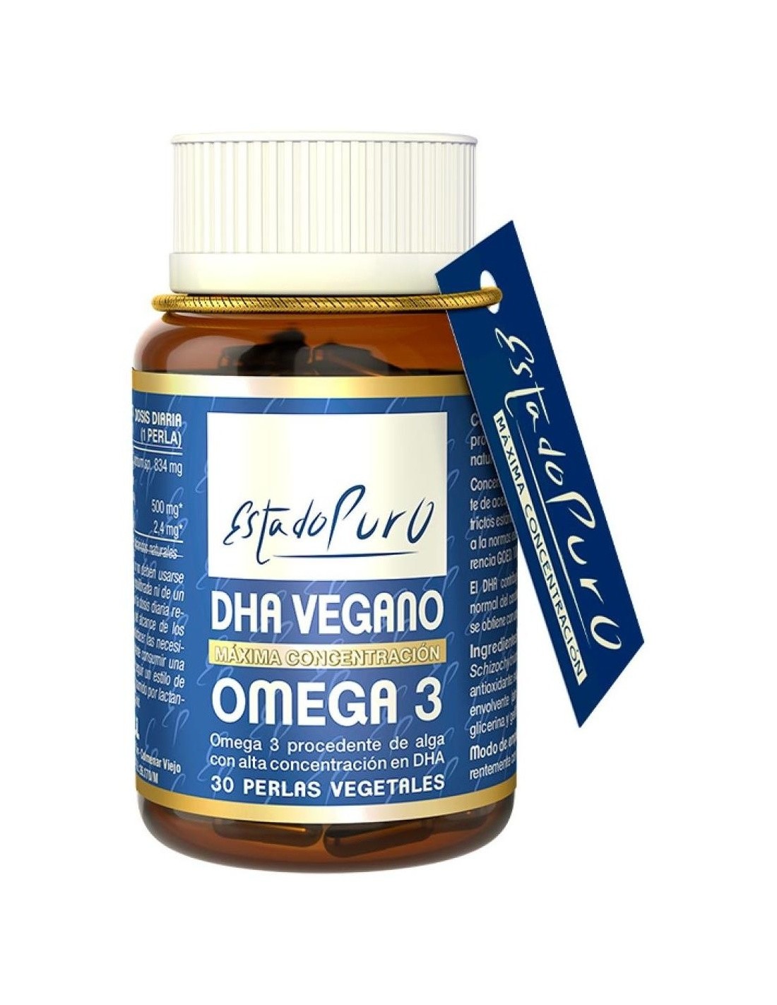 Concentrado natural de DHA (500 mg/perla) procedente de aceite de la microalga Schizochytrium sp., obtenido bajo los más estrictos estándares de calidad y pureza, de acuerdo con las normas establecidas por la Institución de Referencia GOED.Omega 3 en forma de Triglicéridos, forma en la que se encuentra naturalmente y que favorece la mayor biodisponibilidad. 100% sostenible. Se cultiva en biorreactores y no se agotan los recursos naturales ni se altera la biodiversidad.Altamente estable. Las cualidades del aceite se mantienen a lo largo del tiempo gracias a la mezcla de tocoferoles antioxidantes que le ofrecen protección durante el procesado y almacenamiento.Composición activa por perla:834 mg de Aceite de la microalga Schizochytrium sp (500 mg* de DHA y 2,4 mg* de EPA).(*) Ácidos Grasos Omega 3 como triglicéridos naturales.Otros ingredientes:Perla envolvente (almidón modificado, humectante: glicerina y gelificante: carragenano), aceite de girasol y antioxidante (extracto rico en tocoferoles).Modo de empleo:Tomar 1 perla al día, preferentemente con la comida.Presentación:Envase de 30 perlas vegetales.Recomendaciones y advertencias:Apto para veganos. Alérgenos: No contiene.