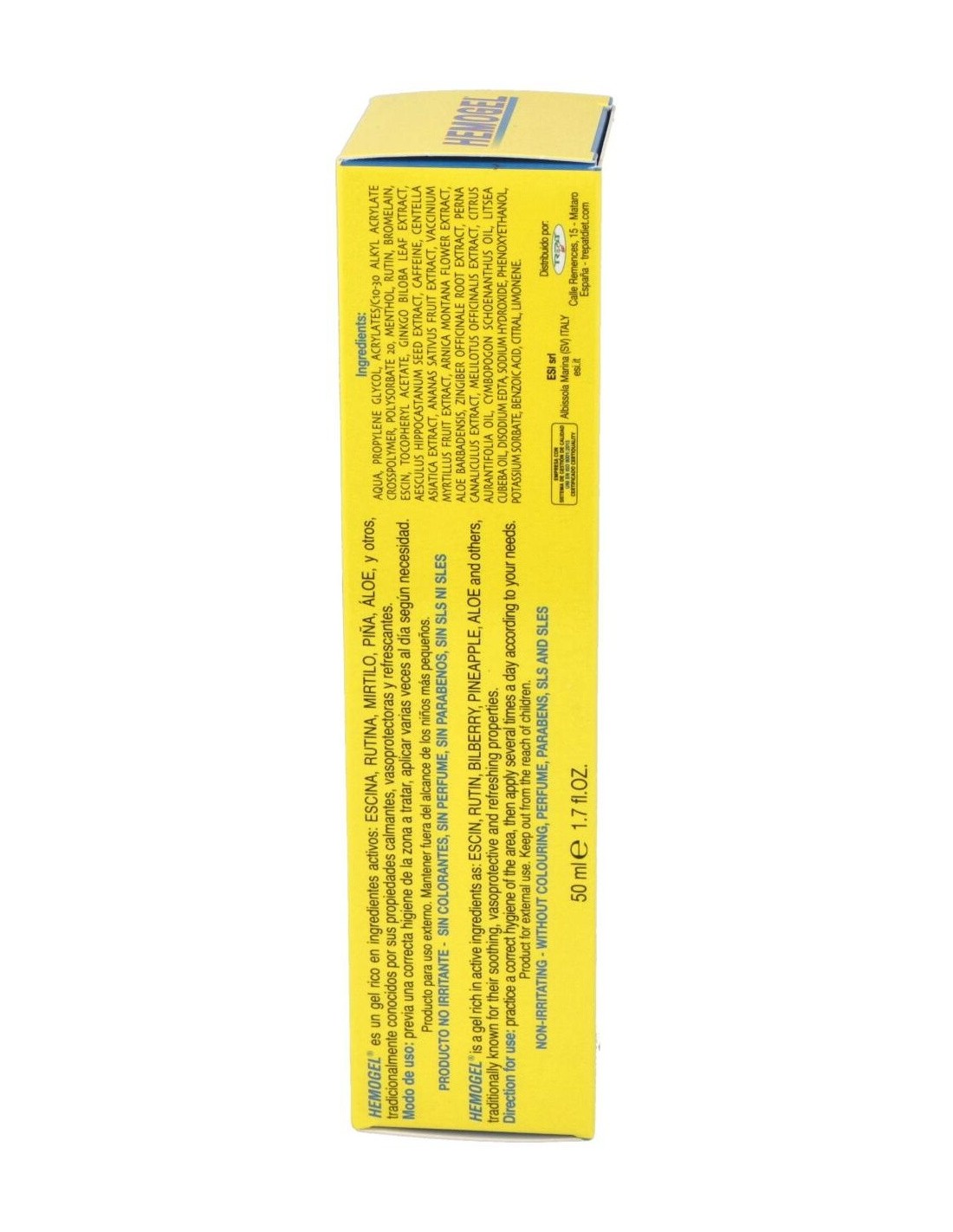 Ingredientes (INCI):Aqua, Propylene Glycol, Deceth-7, Peg-40 Hydrogenated Castor Oil, Glycerin, Arnica Montana Flower Extract, Aloe Barbadensis Leaf Juice, Ginkgo Biloba Leaf Extract, Rutin, Caffeine, Escin, Bromelain, Citrus Aurantifolia Oil, Ananas Sativus Fruit Extract, Zingiber Officinale Root Extract, Aesculus Hippocastanum Seed Extract, Vaccinium Myrtillus Fruit Extract, Melilotus Officinalis Extract, Centella Asiatica Extract, Litsea Cubeba Fruit Oil, Menthol, Cymbopogon Citratus Leaf Oil, Acrylates/c10-30 Alkyl Acrylate Crosspolymer, Ppg-26-buteth-26, Maltodextrin, Alcohol Denat., Tocopheryl Acetate, Sodium Hydroxide, Citric Acid, Tetrasodium Glutamate Diacetate, Disodium Edta, Ethylhexylglycerin, Phenoxyethanol, Potassium Sorbate, Sodium Benzoate, Citral, Geraniol, Limonene.Modo de empleo:Aplicar el gel vía rectal administrando la dosis adecuada las veces necesarias durante el día. Resulta fundamental practicar una higiene de la zona anal después de cada evacuación intestinal. Lavas las manos antes y después de cada aplicación, por razones de higiene y para evitar infecciones. Presentación:Envase de 50 ml.Recomendaciones y advertencias:No contiene colorantes ni perfume.