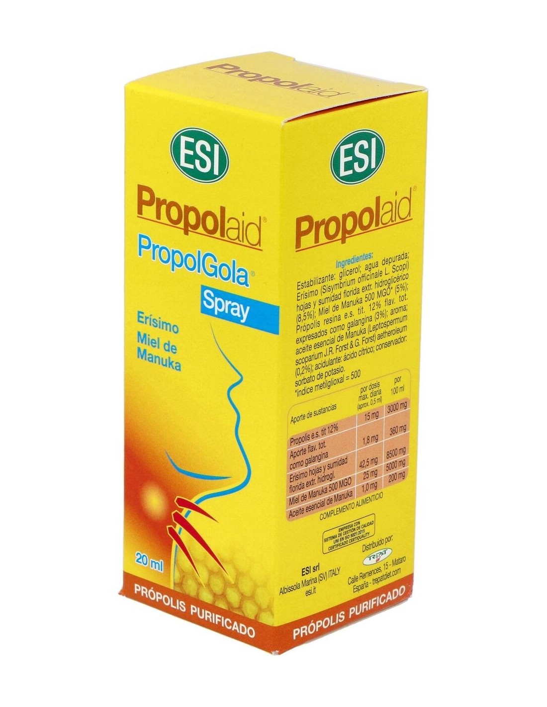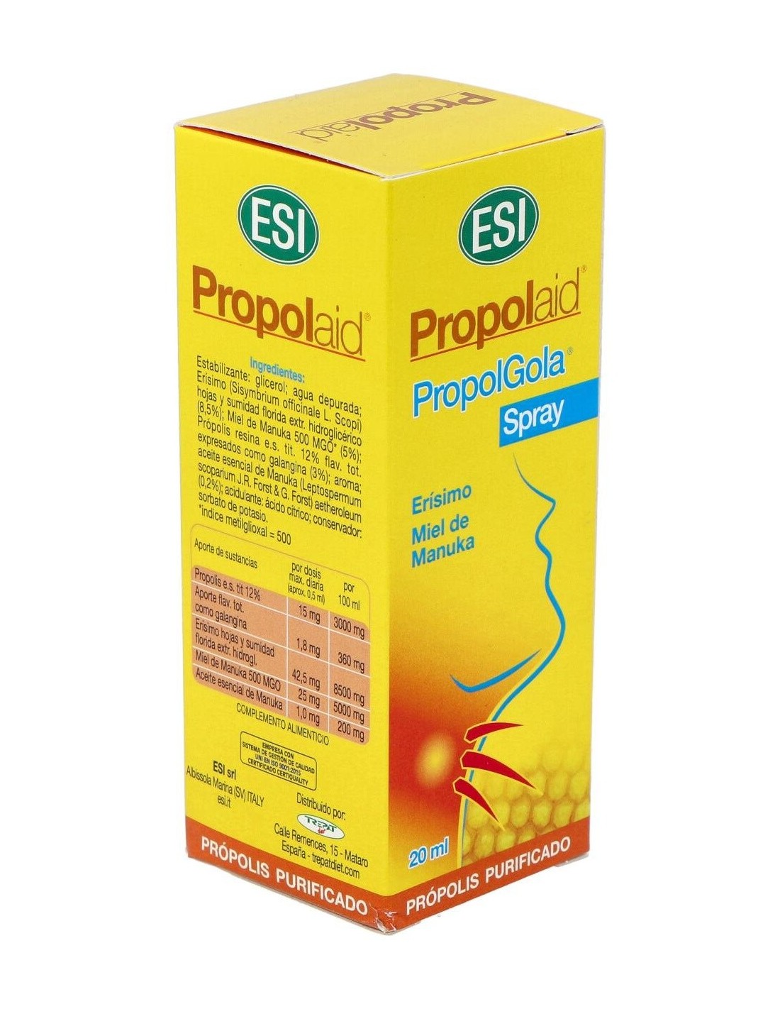 TREPATDIET-ESIEl Propolaid Propolgola Miel Manuka Spray Oral 20Ml de Trepatdiet-Esi es un complemento para personas que buscan cuidado bucal natural, que aporta propiedades de la miel de Manuka en un formato práctico y fácil de usar.