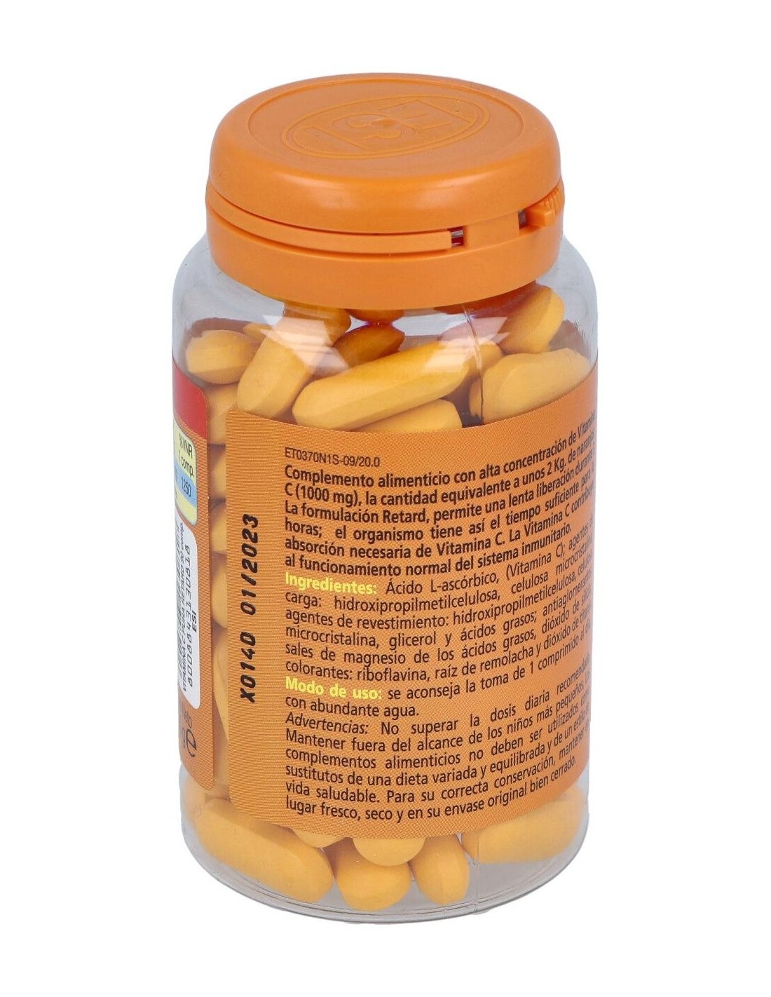Vitamina C ácido l-ascórbico (1000 mg.), Agentes de carga: hidroxipropilmetilcelulosa, ácido esteárico y celulosa microcristalina; Agentes antiaglomerantes: estearato de magnesio vegetal y dióxido de silicio; Colorantes: riboflavina, dióxido de titanio, óxido de hierro.