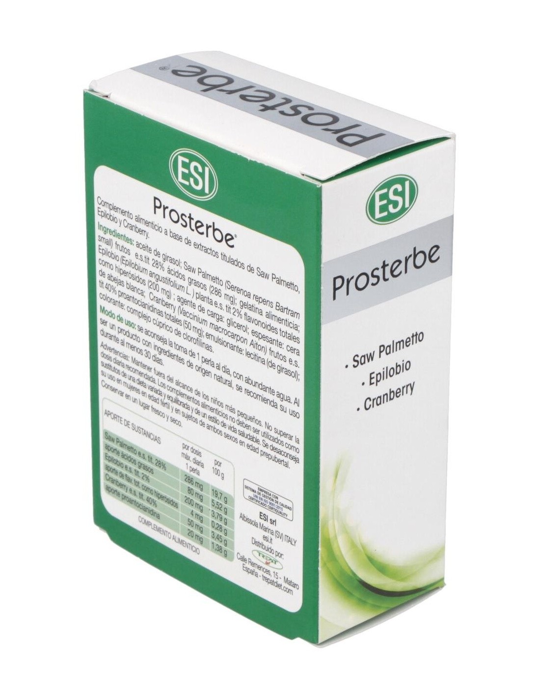 Prosterbe 30prl es un complemento alimenticio que da soporte y mantiene el bienestar de la próstata. Formulado a base de Epilobium, Saw Palmetto y Cranberry (40% de proantocianidinas) que contribuyen a promover el bienestar del tracto urinario.