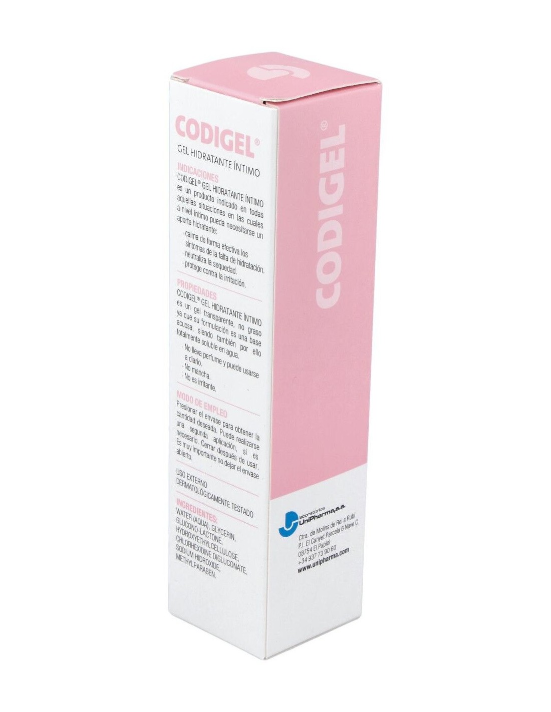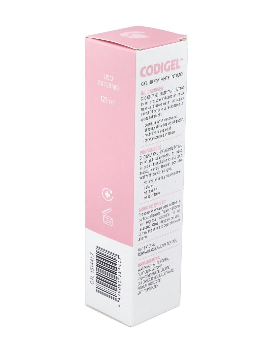 Codigel® gel hidratante íntimo 125ml es un gel hidratante íntimo indicado para aliviar los síntomas de atrofia, sequedad y molestias relacionadas con la sequedad vaginal. Es un gel idóneo para aportar a tu zona intima un extra de hidratación y aliviar las molestias como el picor, la irritación, el escozor y la dispareunia (dolor durante las relaciones sexuales).