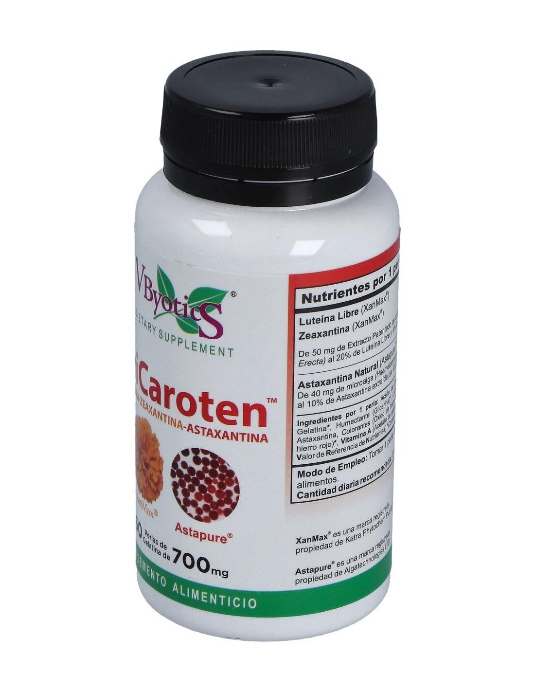 VBYOTICSReúne dos de los productos patentados de mayor calidad y pureza, XanMax una combinación única de Luteína y Zeaxantina y Astapure que proporciona Astaxantina natural, estable y altamente biodisponible. Reúne dos de los productos patentados de mayor calidad y pureza, XanMax una combinación única de Luteína y Zeaxantina y Astapure que proporciona Astaxantina natural, estable y altamente biodisponible.