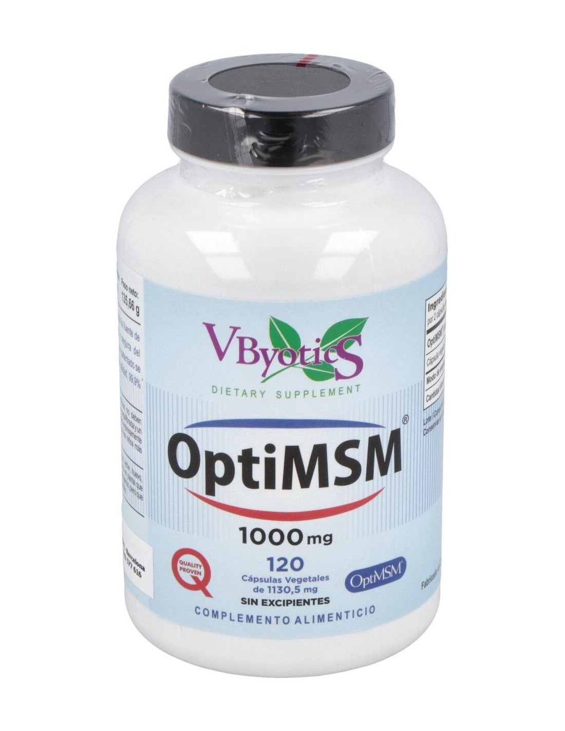 VBYOTICSEl Opti-Msm 1000Mg 120Comp. de Vbyotics es un suplemento para personas activas que busca apoyar la salud articular y muscular mediante una fórmula concentrada de MSM.