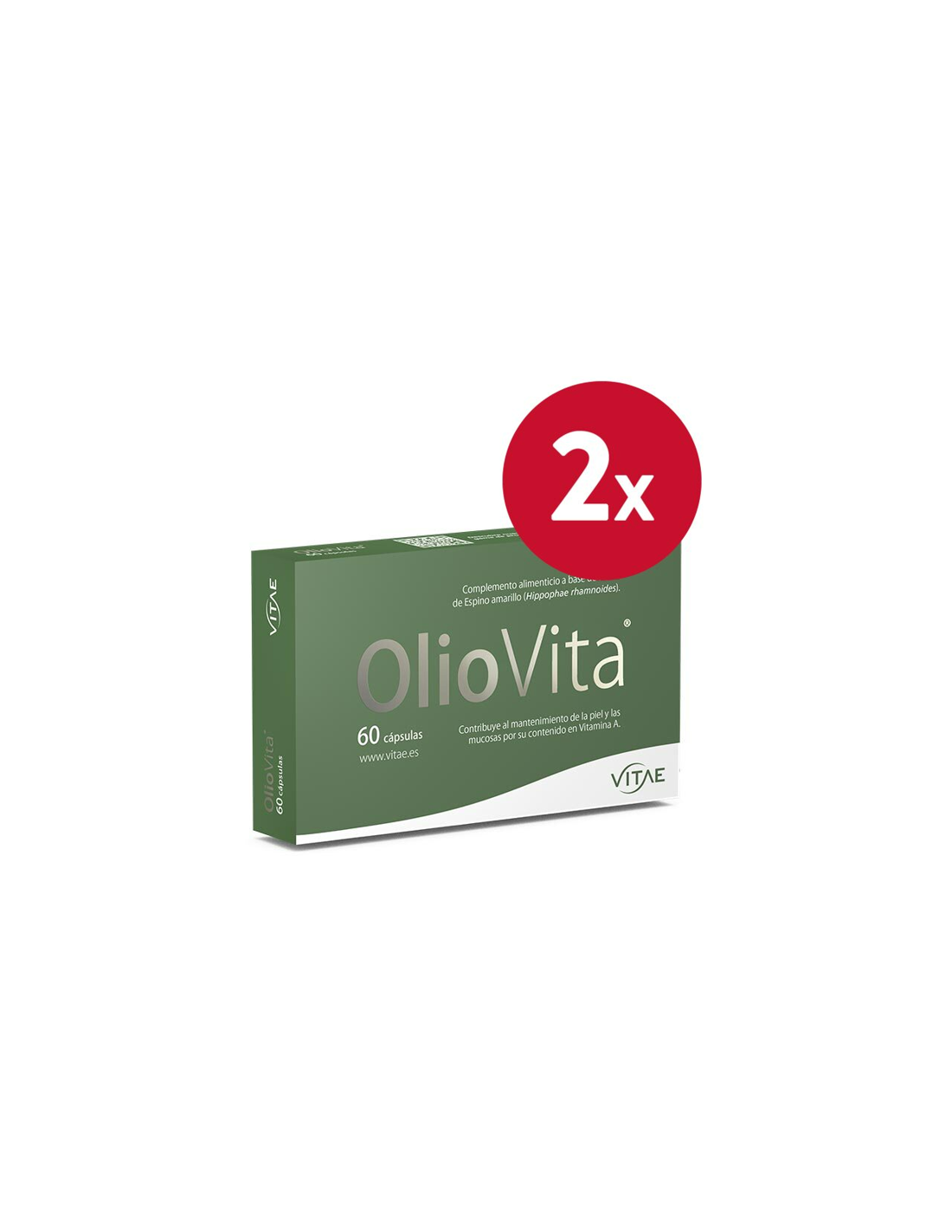 VITAE PACKOlioVita® es una complemento a base de aceite de espino amarillo (Hippophae rhamnoides) de alta calidad rico en omega-7, omega-3,6 y 9, además de vitaminas naturales A y E, que ayuda a nutrir y regenerar la piel y las mucosas. OlioVita® se obtiene por un exclusivo proceso de extracción que garantiza un aceite de máxima calidad, 100% natural, y exento de contaminantes químicos. Nutrición, hidratación y regeneración. El aceite de espino amarillo, entre otros componentes, lleva: Ácido palmitoleico-?7: Se encuentra en la membrana de las células de la piel y las mucosas, favoreciendo el equilibrio hídrico, el paso de nutrientes y la protección frente a microorganismos y radicales libres. Ácido oleico-?9: acción clave en la reconstrucción de las membranas celulares de la piel, dejándola más tersa. Tiene una elevada capacidad para penetrar en la piel. Actividad antibacteriana. Ácido linoléico-?6: componente fundamental de las distintas membranas del organismo. Contribuye a la hidratación de la piel, reparan y fortalecen su barrera protectora. Actividad antibacteriana. Ácido alfa linolénico-?3: componente fundamental de las distintas membranas del organismo. Contribuye a la hidratación de la piel, reparan y fortalecen su barrera protectora. Vitamina E (a-tocoferol): protección frente el envejecimiento celular. Vitamina A (ß-caroteno): formación y mantenimiento de los epitelios. Tomar 4 cápsulas al día los dos primeros meses, juntas o separadas en dos tomas. A partir del tercer mes, 2 cápsulas al día.