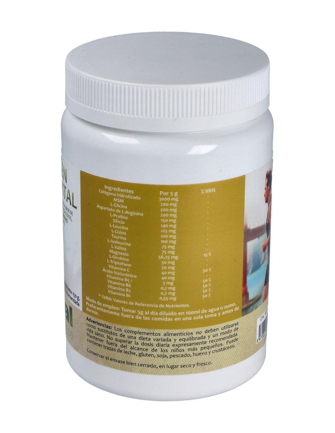 - Contiene colágeno hidrolizado que contribuye a la nutrición de tejidos conectivos, facilitando su mantenimiento.