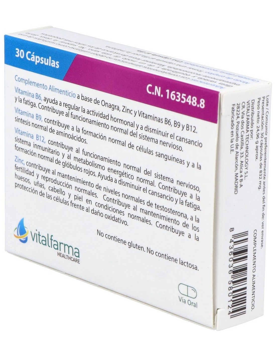 Complemento alimenticio a base de Onagra Microencapsulada 40% GLA (Ácido gamma-linolenico), Zinc y Vitaminas B6, B9 y B12, que contribuyen a regular la actividad hormonal, al mantenimiento de la piel, uñas y cabello en condiciones normales, a la protección de las células frente al daño oxidativo, a la fertilidad y reproducción normales, y al funcionamiento normal del sistema nervioso y del sistema inmunitario.
