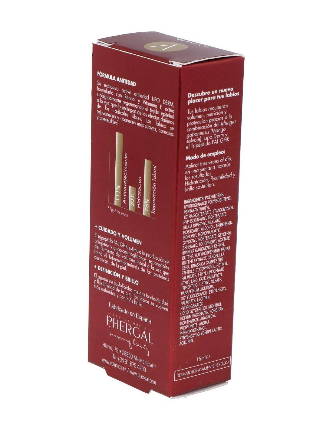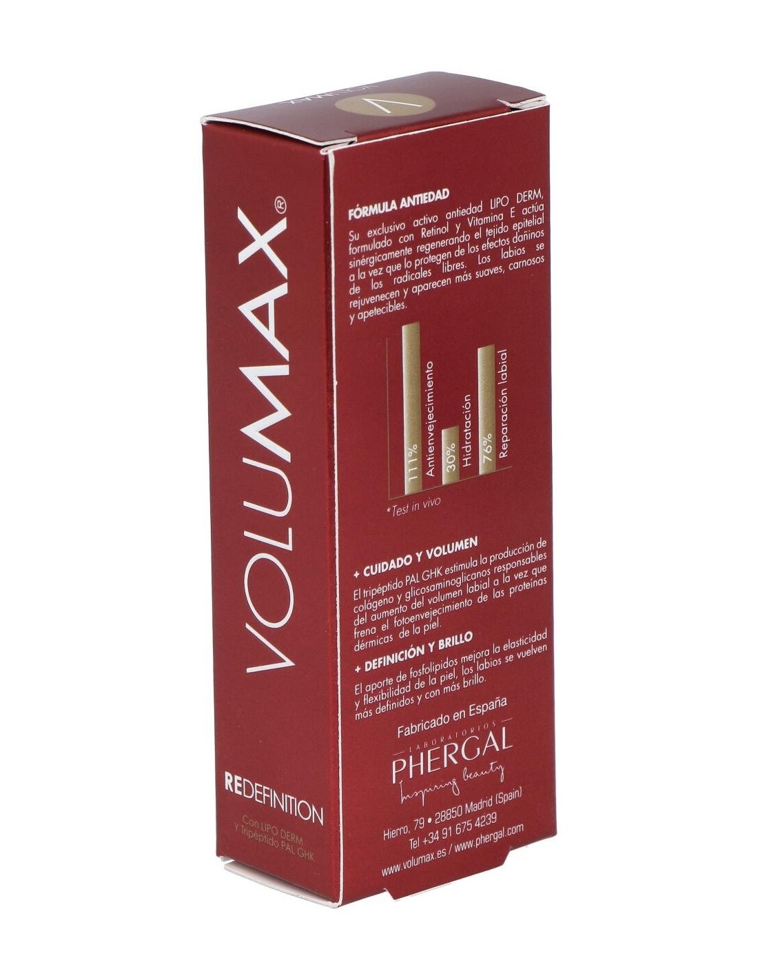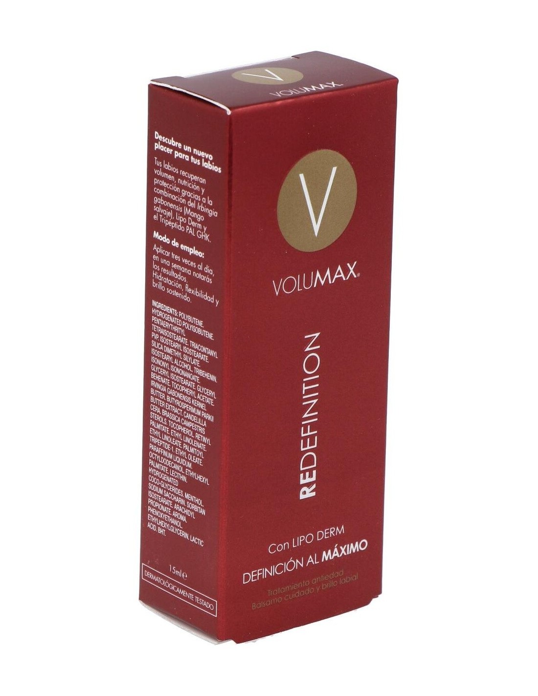 Volumax® Redefinition 15 ml es un bálsamo redensificante antiedad para definir, nutrir y rejuvenecer el contorno de los labios. Los labios se vuelven suaves, carnosos y con más brillo. Otros de sus beneficios son proteger los labios de los efectos perjudiciales de los radicales libres, estimular la producción de colágeno, mejorar su elasticidad e hidratación y frenar el fotoenvejecimiento.