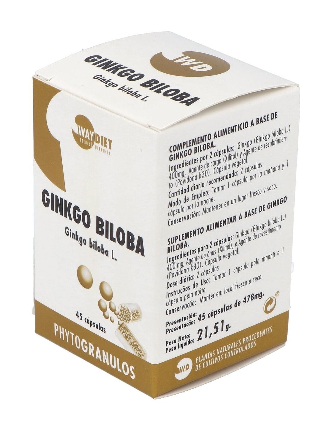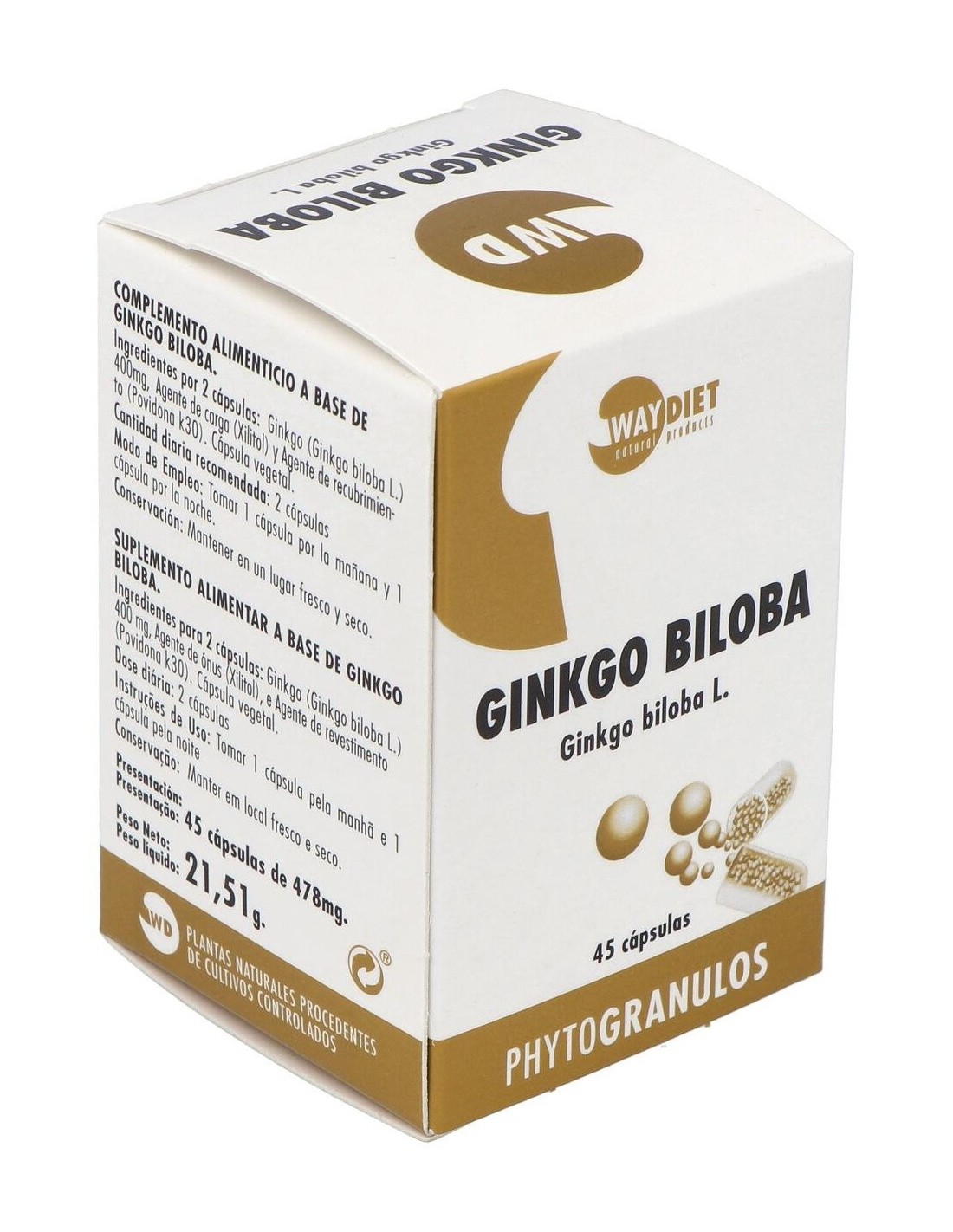 WAYDIET NATURAL PRODUCTSEl Ginkgo Biloba Phytogranulos 45Caps. de Waydiet Natural Products es un suplemento natural para adultos que apoya la función cognitiva y la circulación, gracias a su extracto estandarizado de Ginkgo Biloba.
