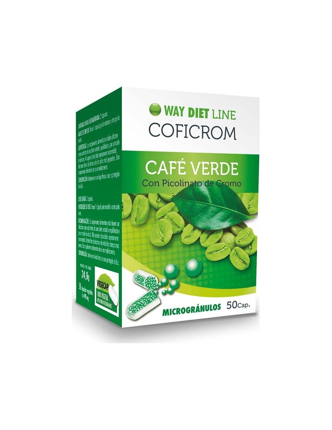 WAYDIET NATURAL PRODUCTSComplemento alimenticio a base de café verde y picolinato de cromo útil en dietas de adelgazamiento. Al ser con cafeína, se deben tener en cuenta los efectos de la aceleración del ritmo cardiaco.