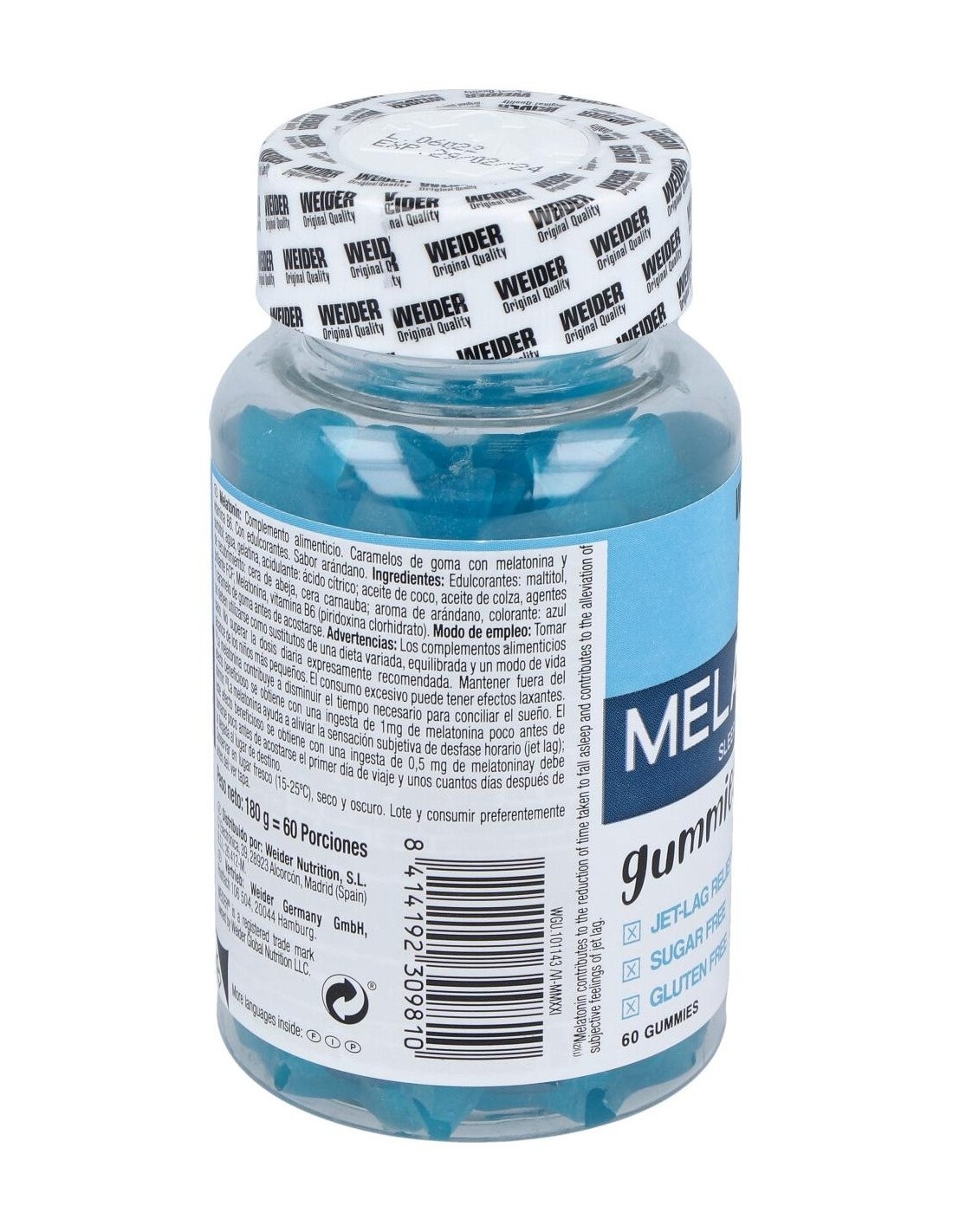 WEIDERWeider Gummy Melatonina 60Gummies de Weider es un suplemento en gomitas diseñado para personas que buscan apoyar su descanso nocturno, facilitando la ingesta de melatonina en una presentación práctica y fácil de consumir.